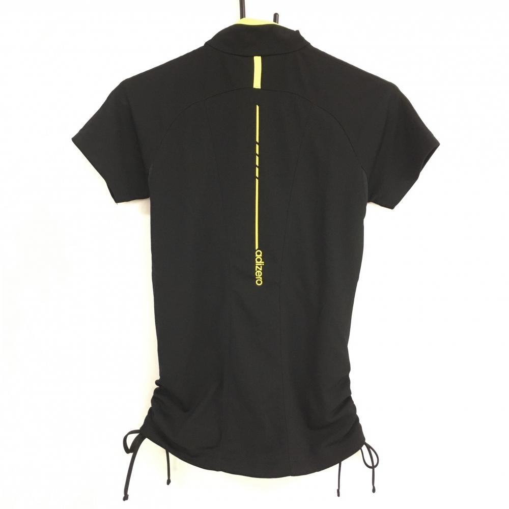 【新品】アディダス 半袖ハイネックシャツ 黒×イエロー ハーフジップ adizero レディース M ゴルフウェア adidas