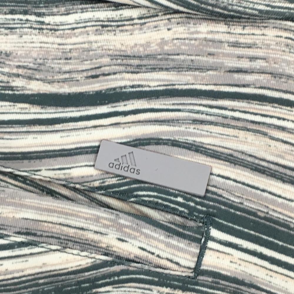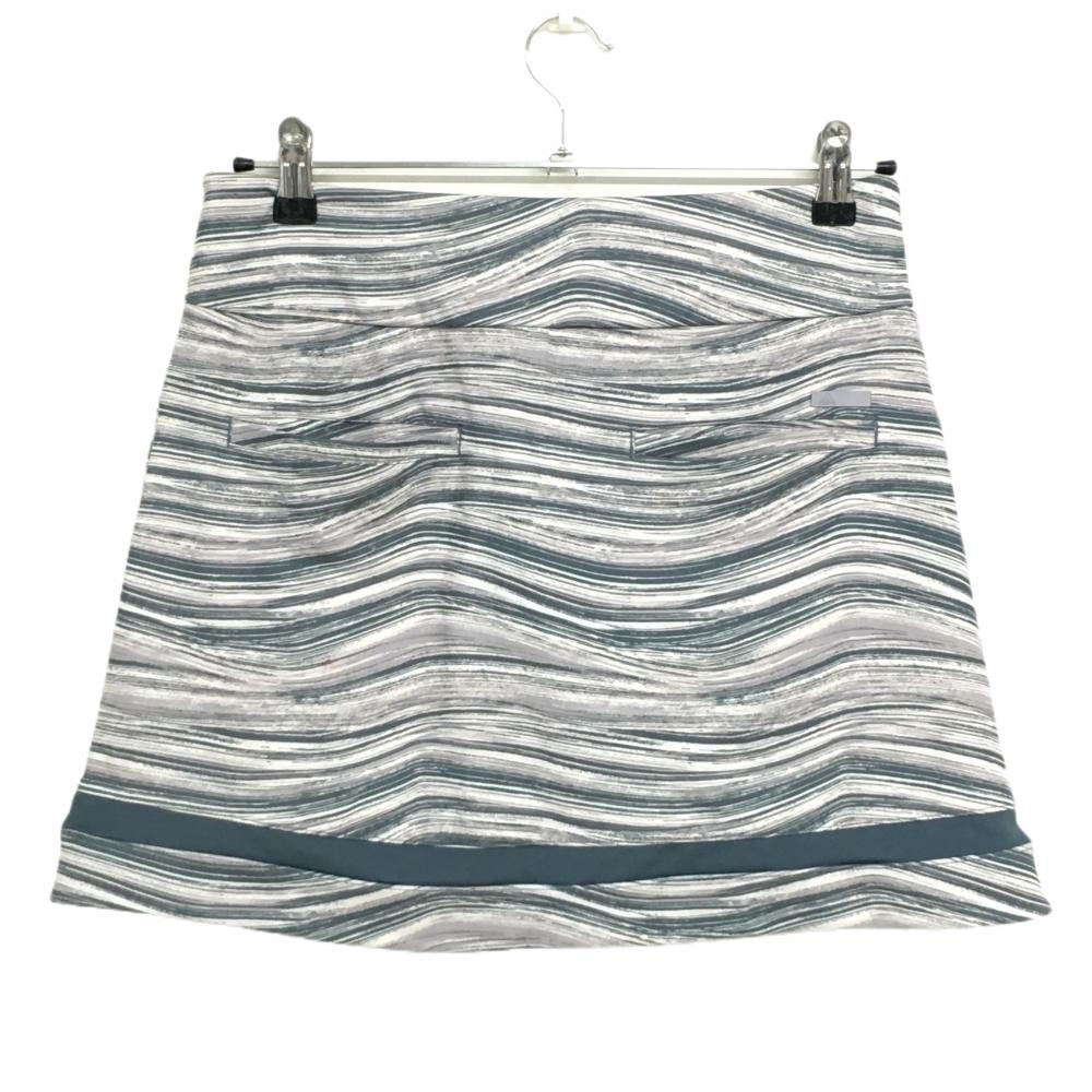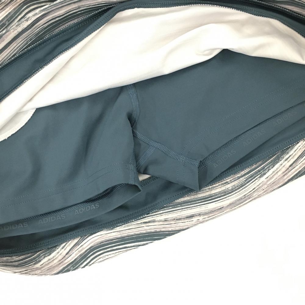 【超美品】アディダス スカート 白×グリーン系×ベージュ系 ボーダー調 内側インナーパンツ レディース L ゴルフウェア adidas