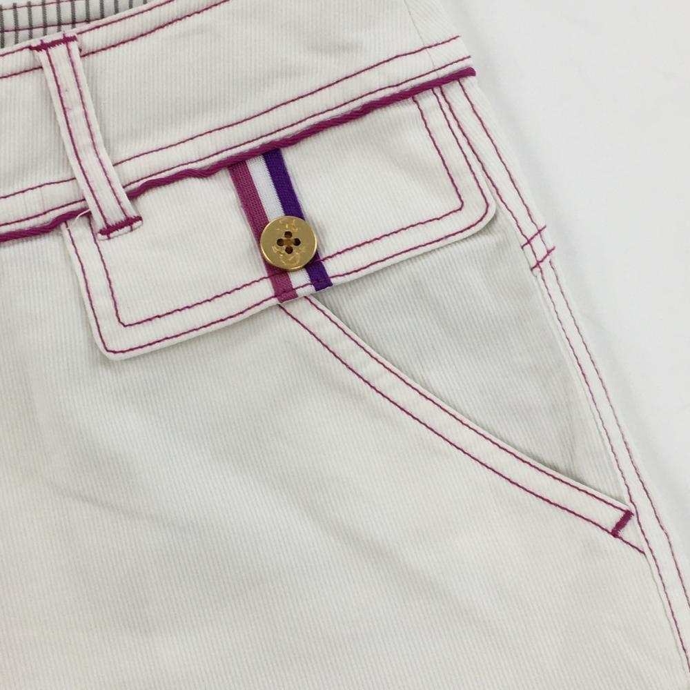 マンシングウェア ショートパンツ 白×パープル系 ステッチ レディース 11 ゴルフウェア Munsingwear