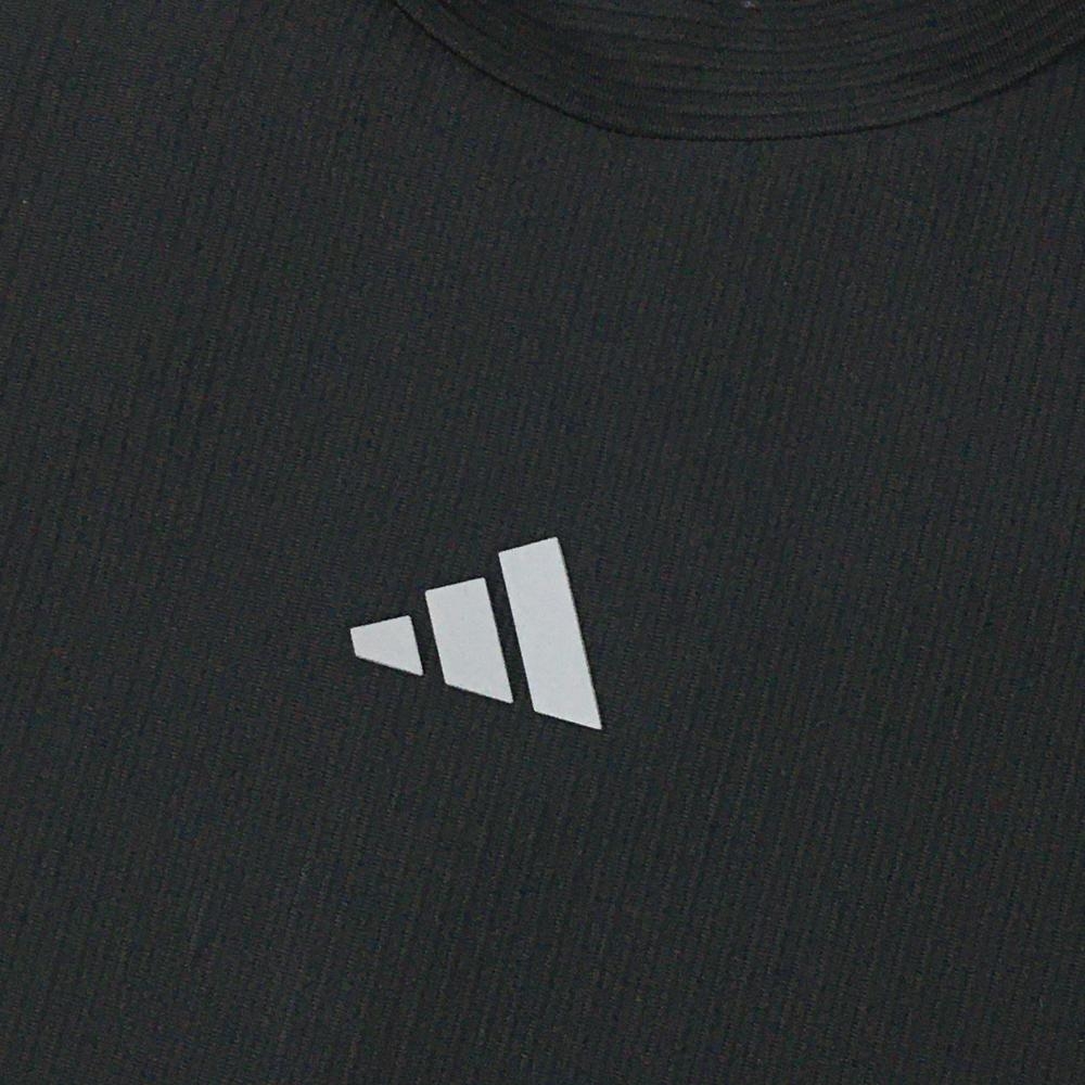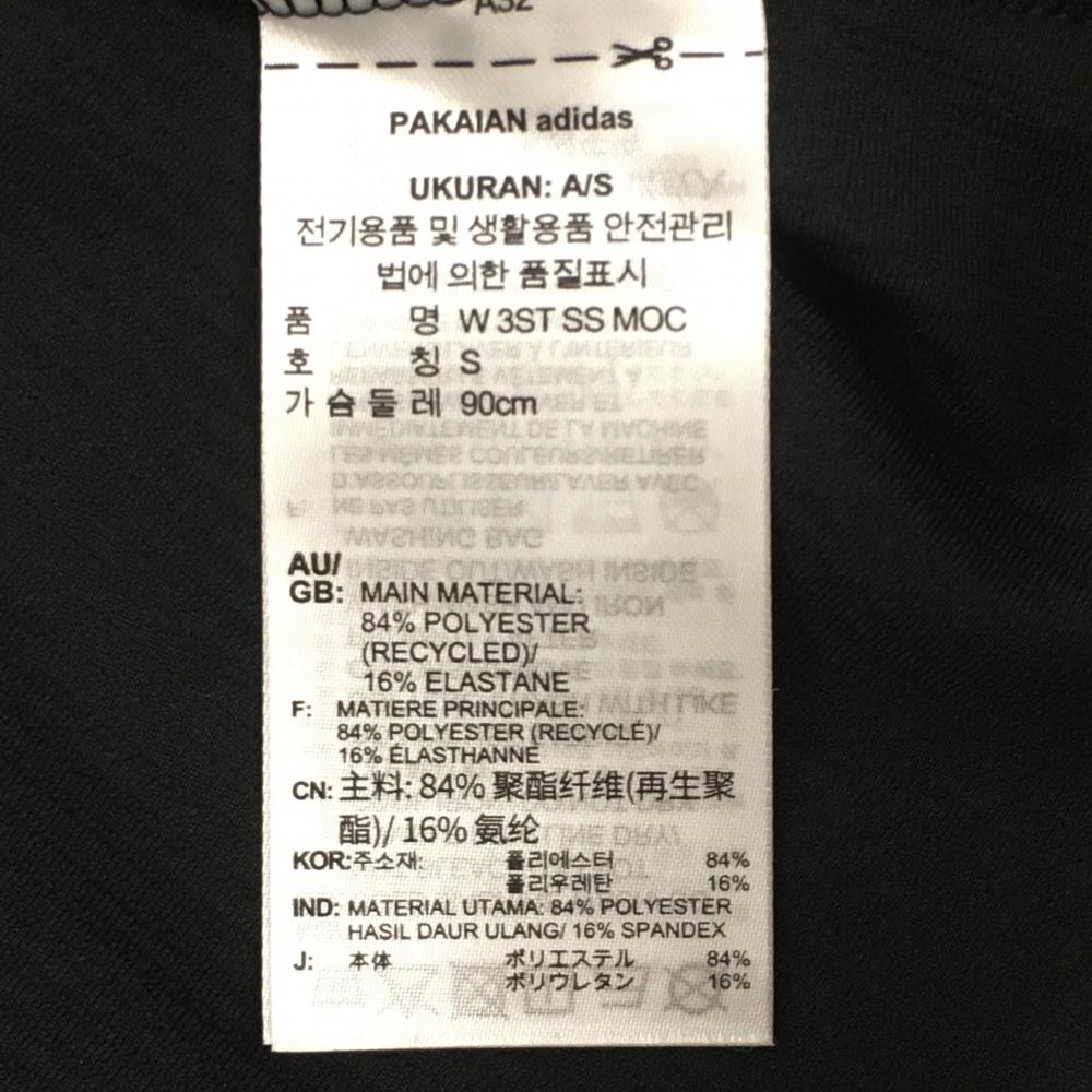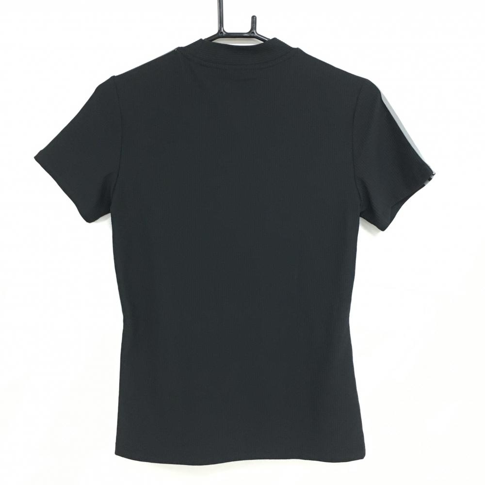 【超美品】アディダス 半袖ハイネックシャツ 黒×グレー ストライプ織生地 肩3ライン ストレッチ レディース M ゴルフウェア adidas
