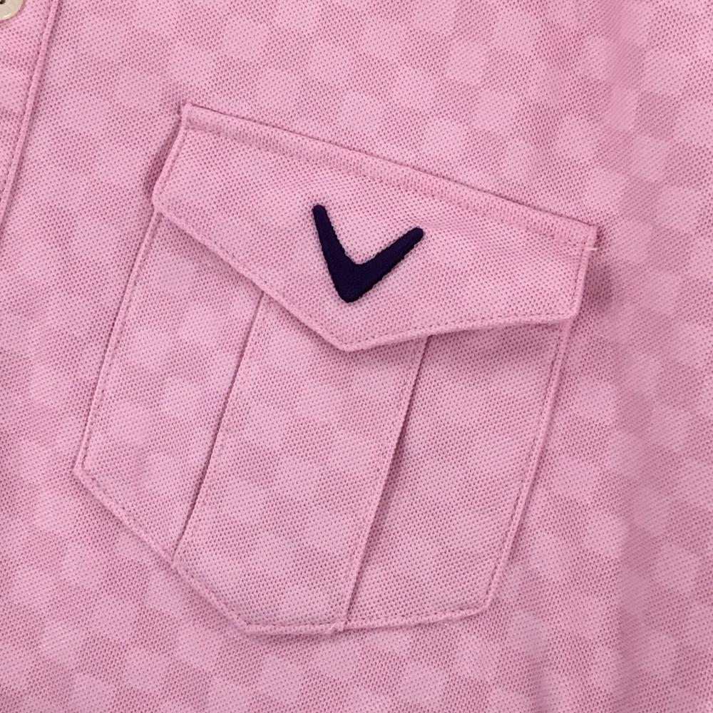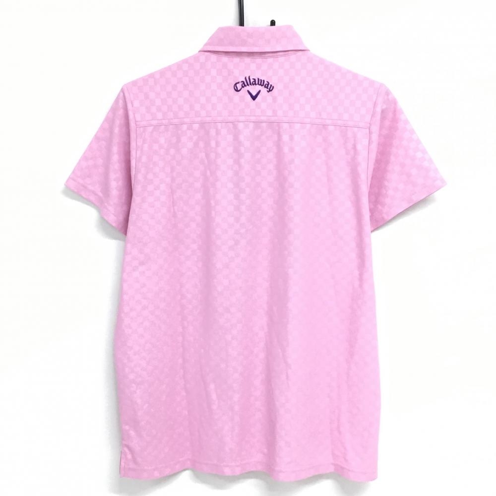【美品】キャロウェイ 半袖ポロシャツ ピンク ボロックチェック地模様 ボタンダウン メンズ L ゴルフウェア Callaway
