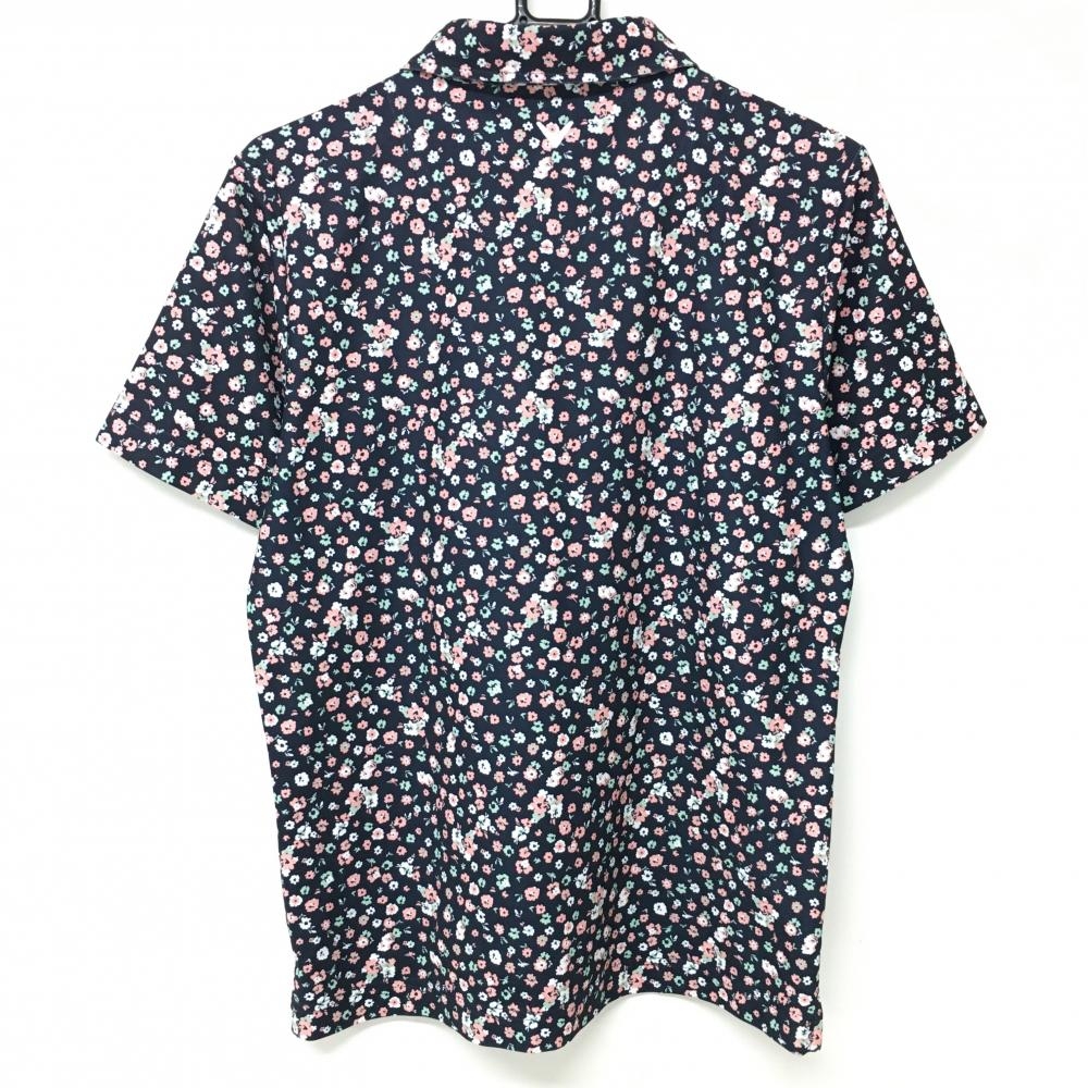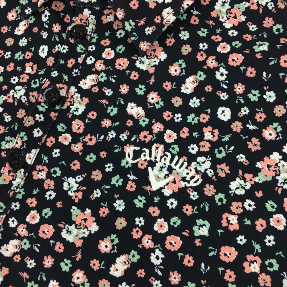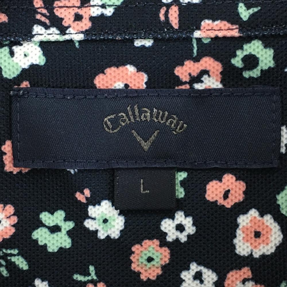 【美品】キャロウェイ 半袖ポロシャツ ネイビー×ピンク×グリーン 小花柄 メンズ L ゴルフウェア Callaway