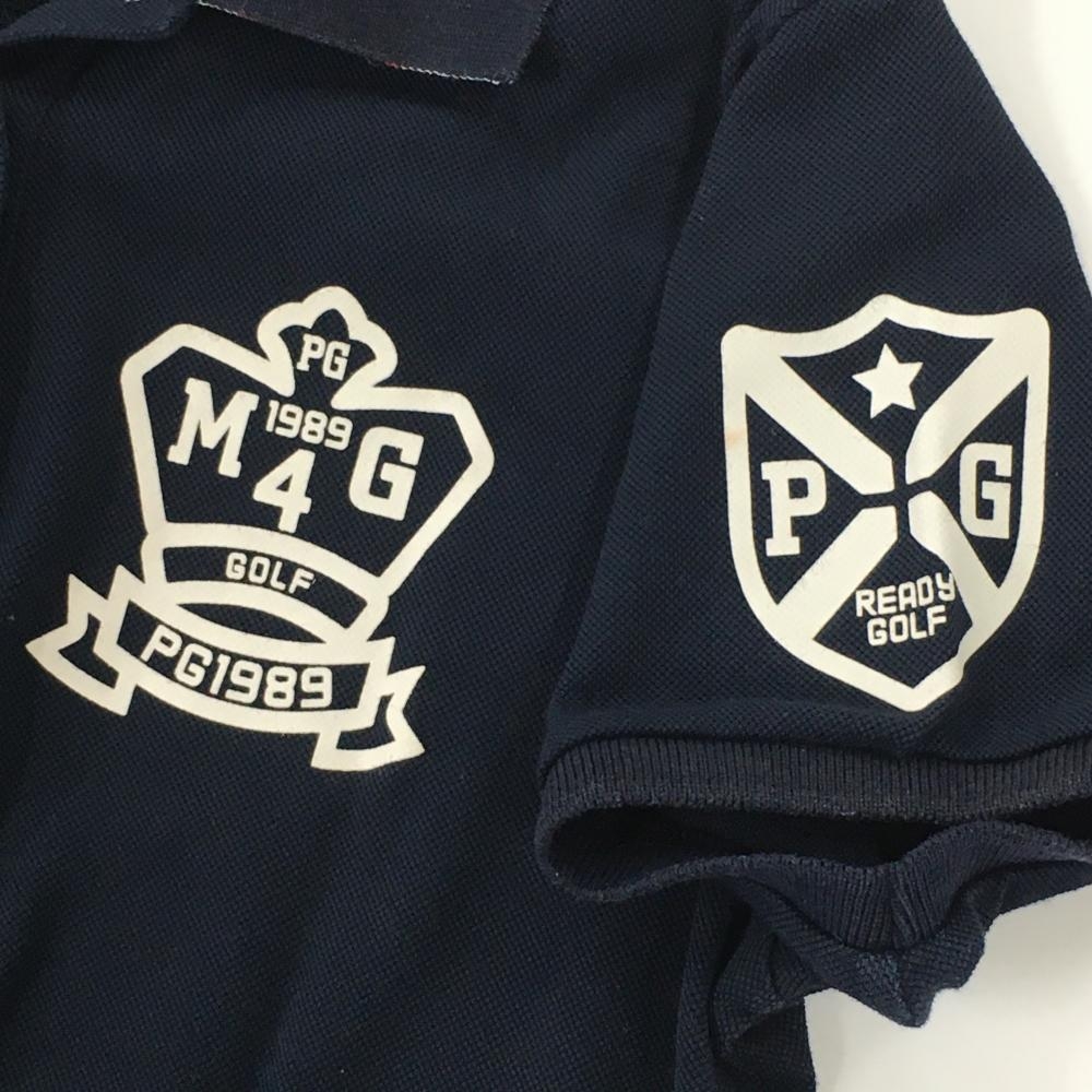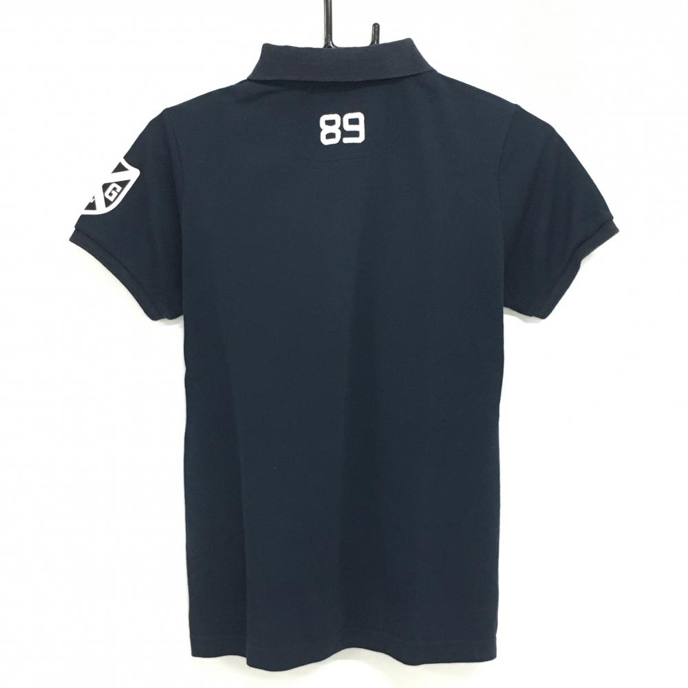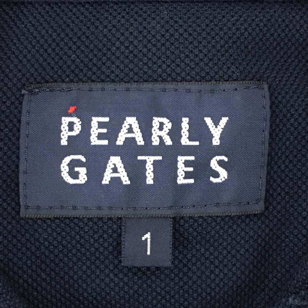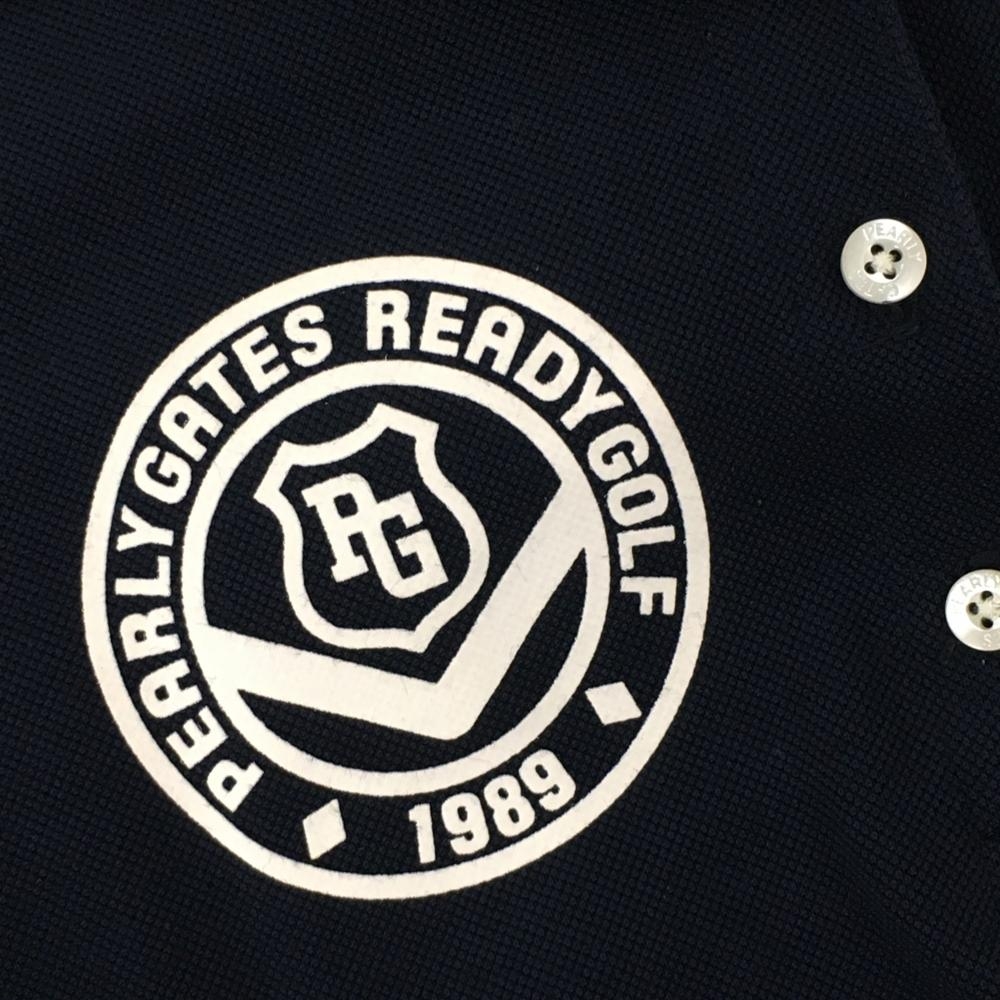 パーリーゲイツ 半袖ポロシャツ ネイビー×白 胸ロゴプリント レディース 1(M) ゴルフウェア PEARLY GATES