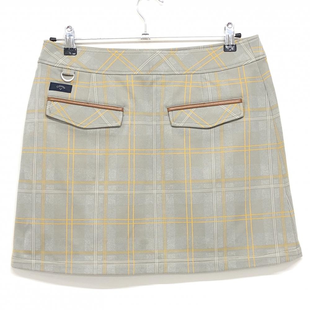 【美品】キャロウェイ スカート グレー×イエロー チェック レディース L ゴルフウェア Callaway