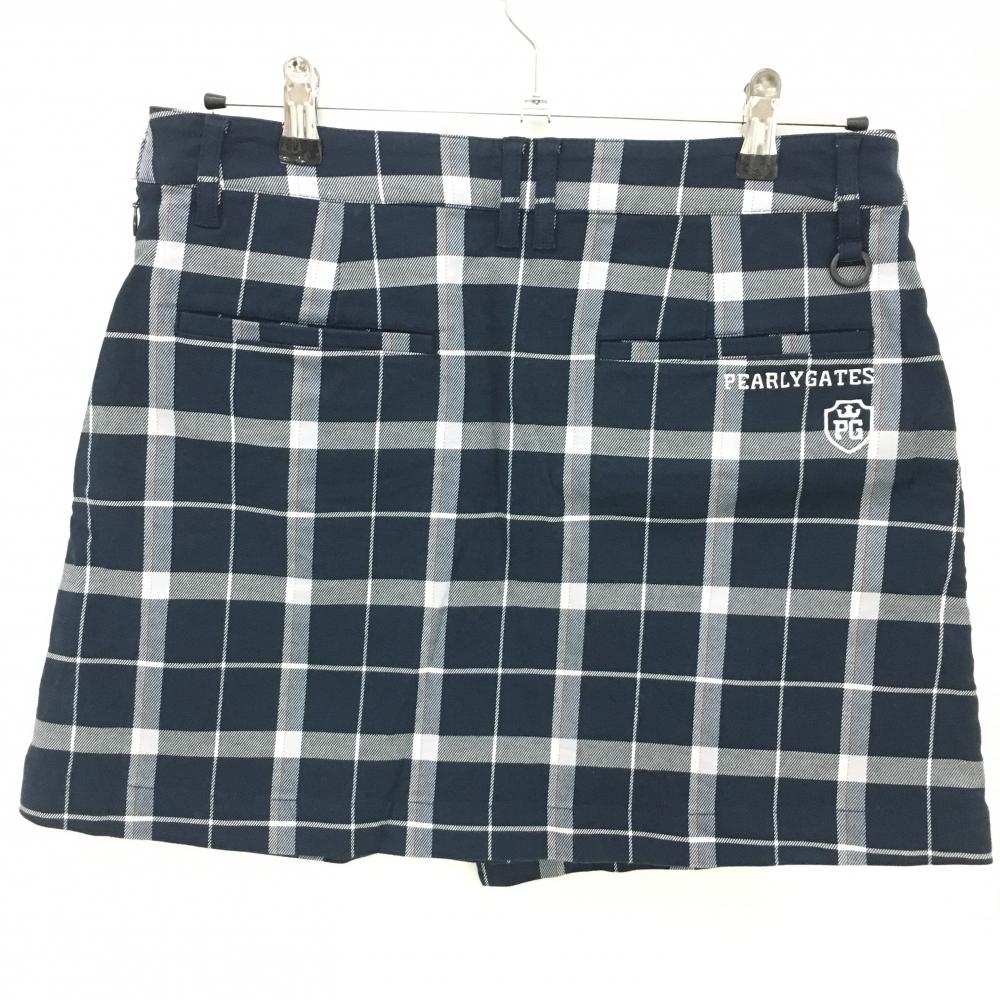 【超美品】パーリーゲイツ スカート ネイビー×白×ライトグレー チェック 30周年 レディース 2(L) ゴルフウェア PEARLY GATES