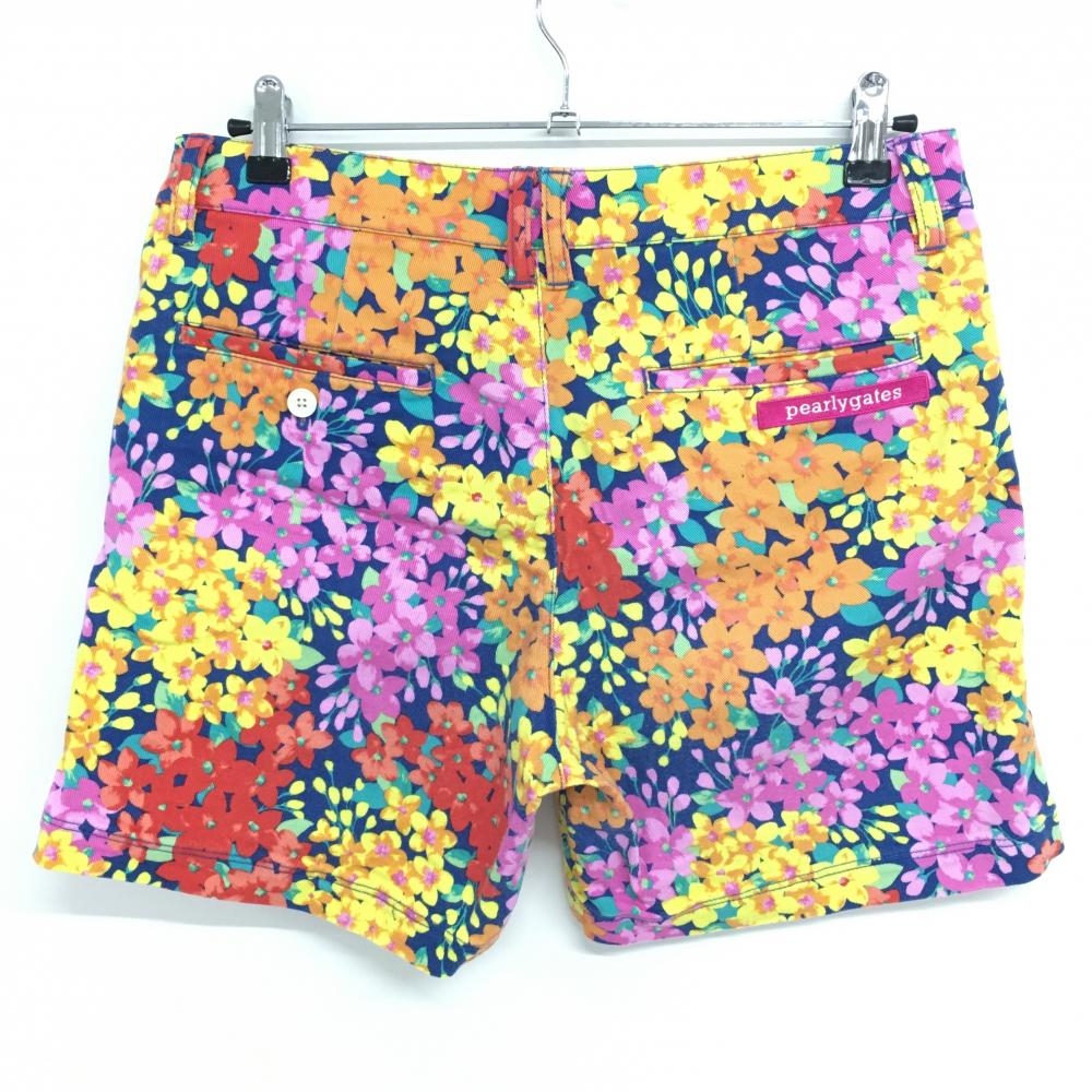 【美品】パーリーゲイツ ショートパンツ ブルー×マルチカラー 花柄 レディース 2(L) ゴルフウェア PEARLY GATES