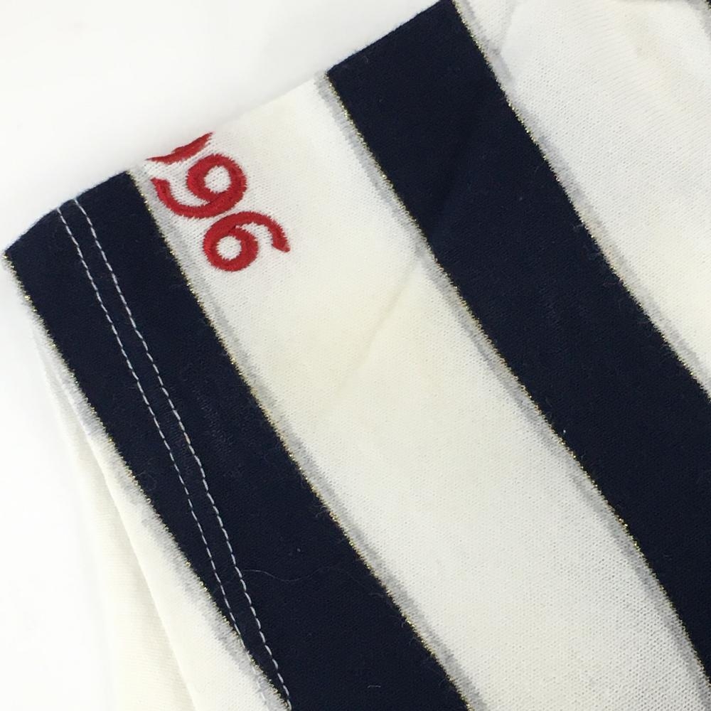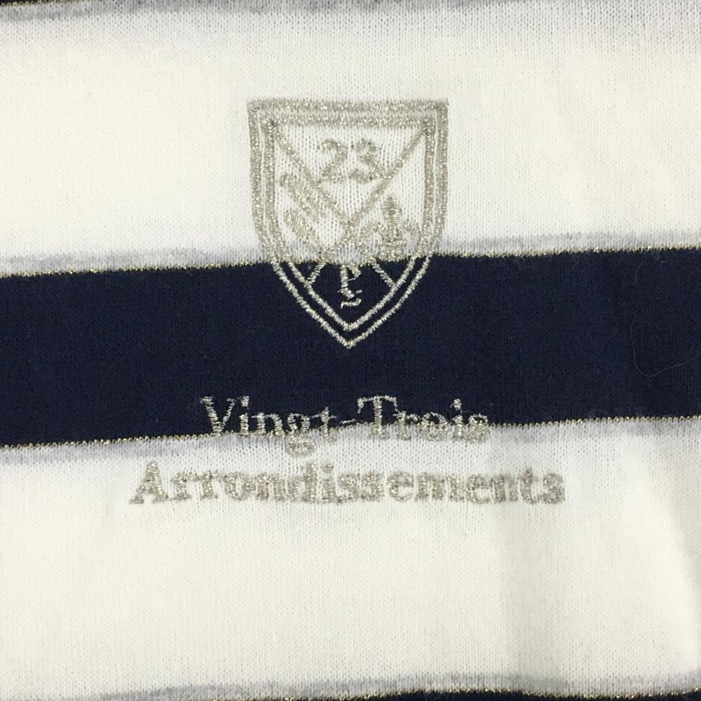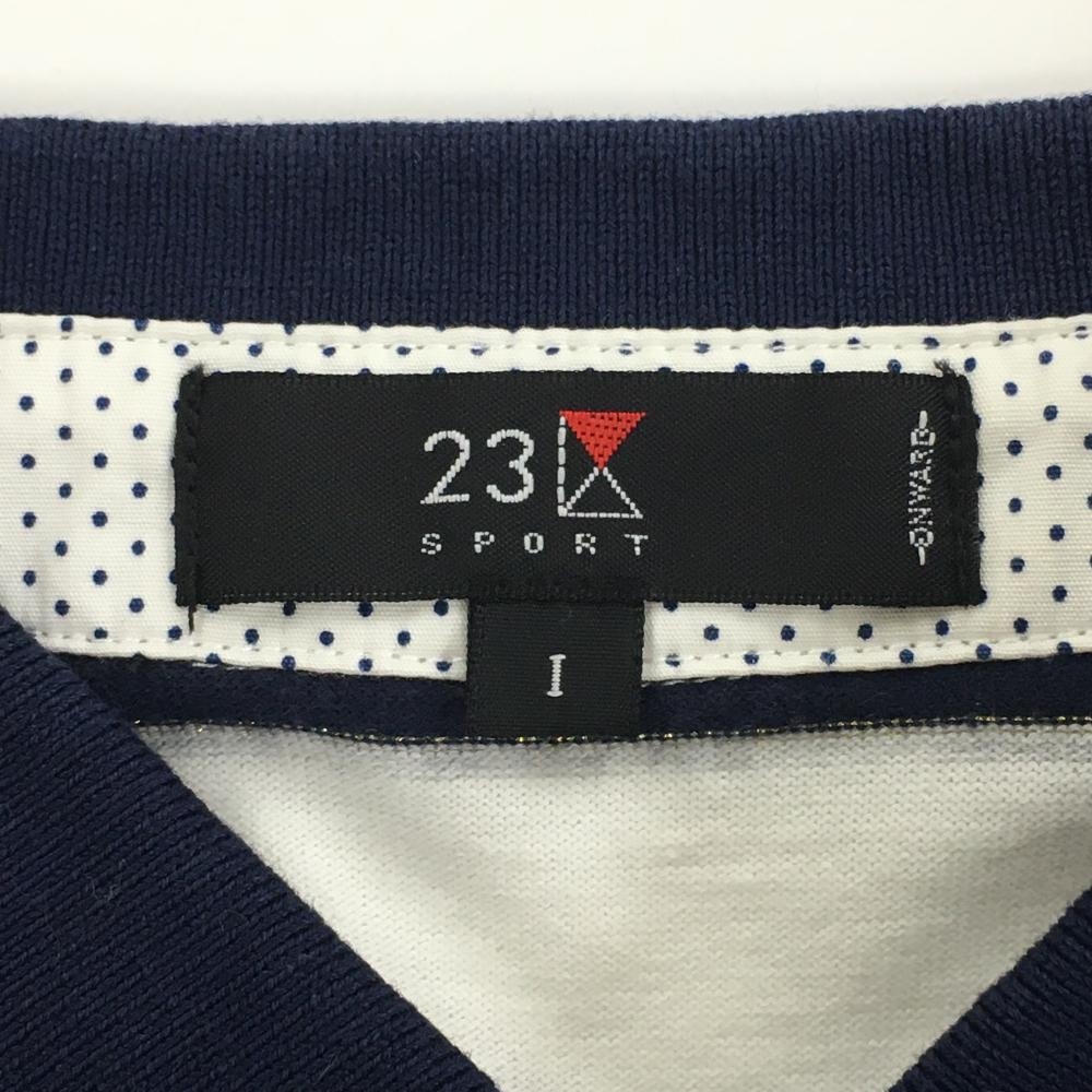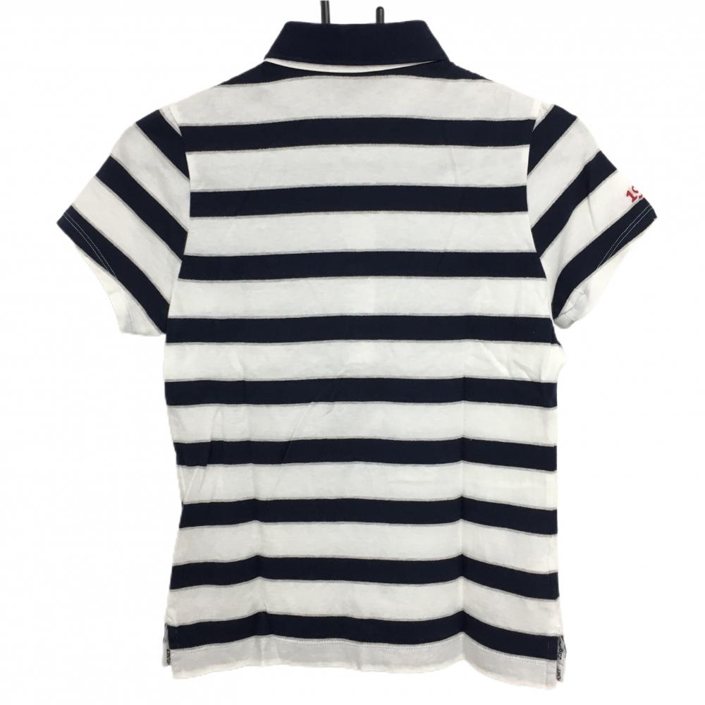 23区スポーツ 半袖ポロシャツ 白×ネイビー ボーダー 胸ロゴ レディース Ⅰ(M) ゴルフウェア 23区
