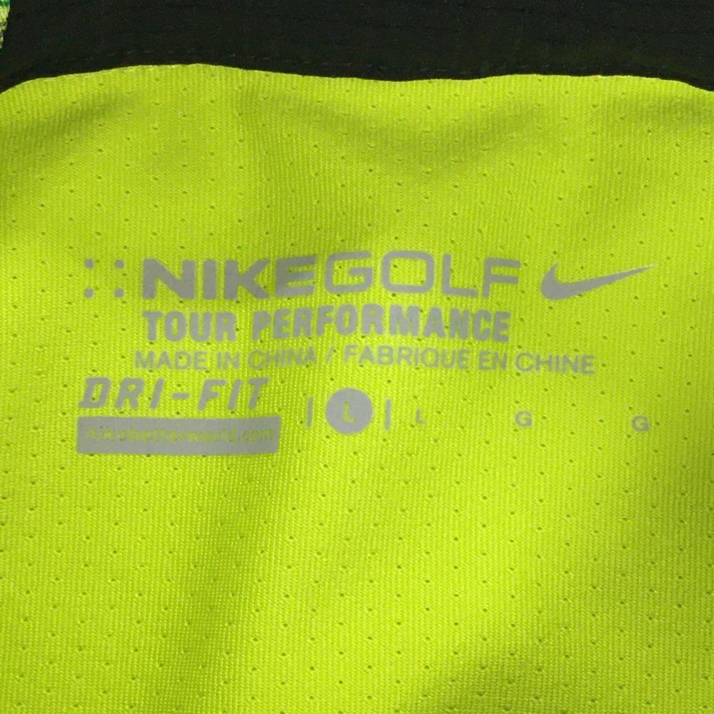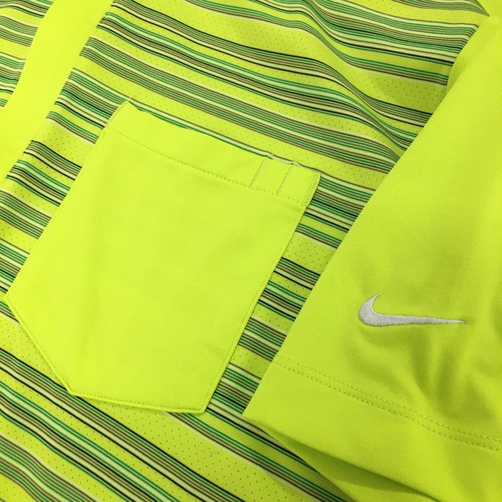 【超美品】ナイキゴルフ 半袖ポロシャツ ライトグリーン×グリーン 前身頃ボーダー ハーフジップ メンズ L ゴルフウェア NIKE
