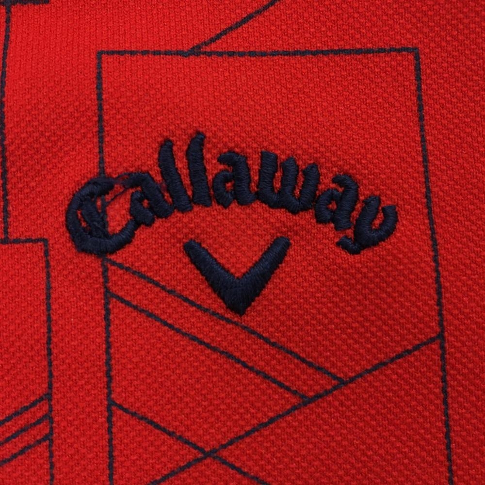 【美品】キャロウェイ 半袖ポロシャツ レッド×ネイビー 総柄 レディース L ゴルフウェア Callaway