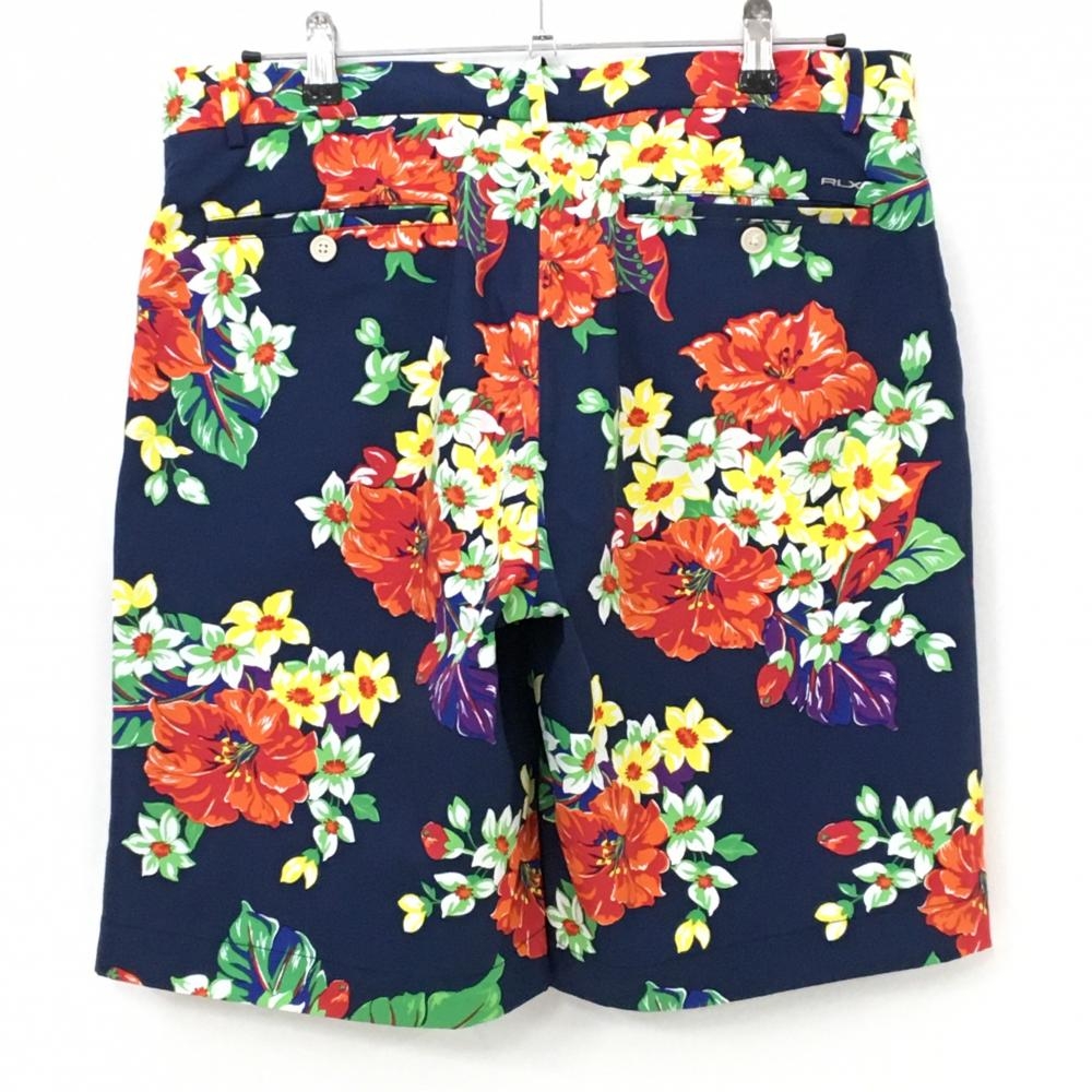 【美品】RLXラルフローレン ハーフパンツ ネイビー×マルチカラー 花柄 メンズ 34 ゴルフウェア Ralph Lauren