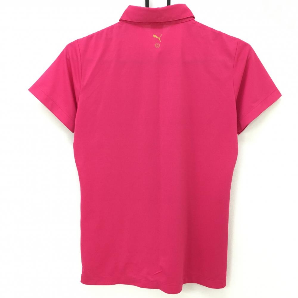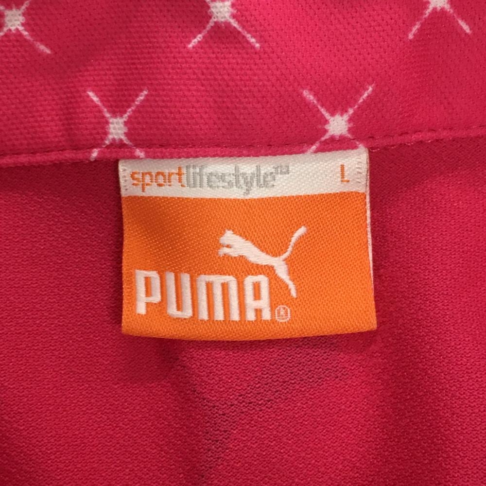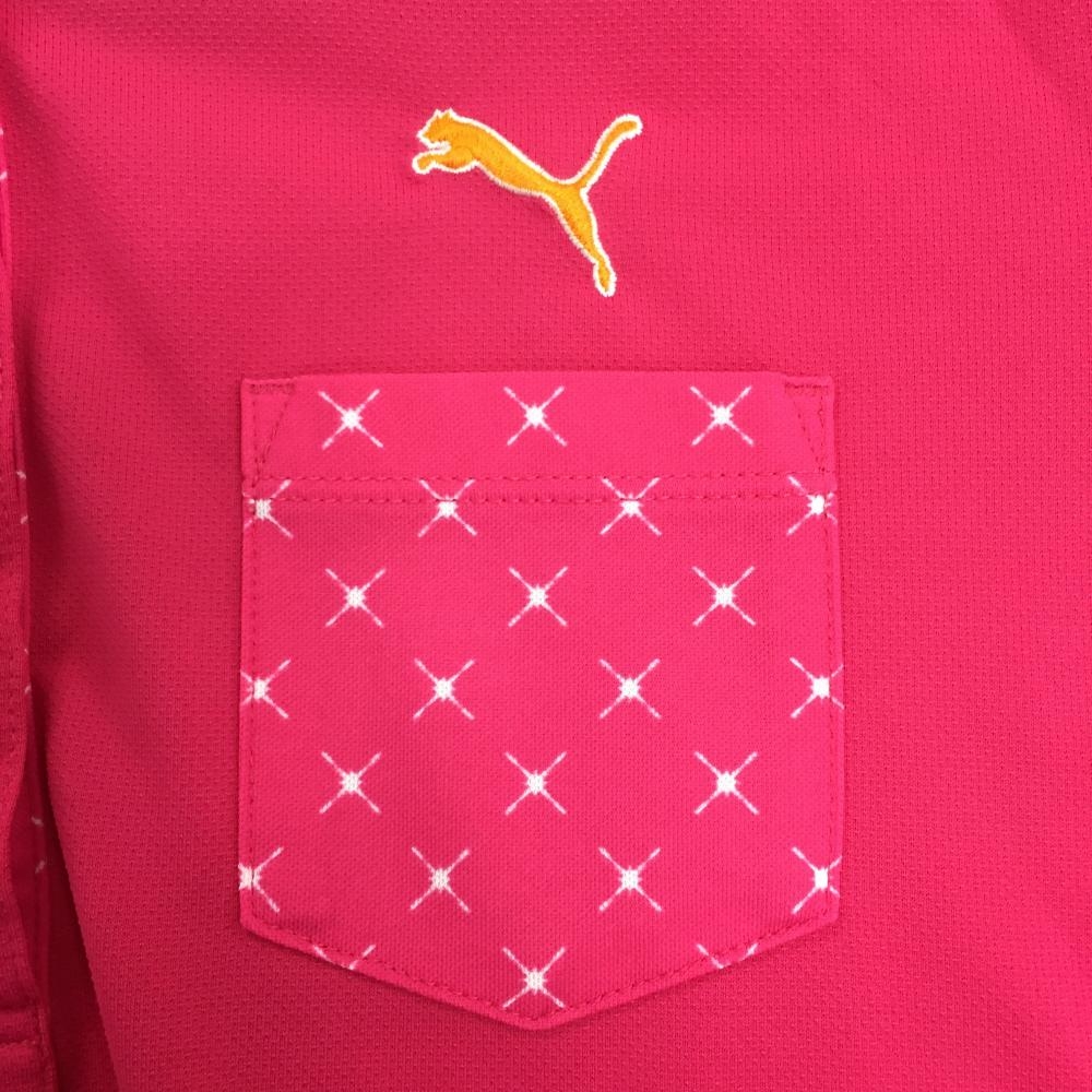 【美品】プーマ 半袖ポロシャツ ピンク×白 胸ポケット総柄 薄手 レディース L ゴルフウェア PUMA