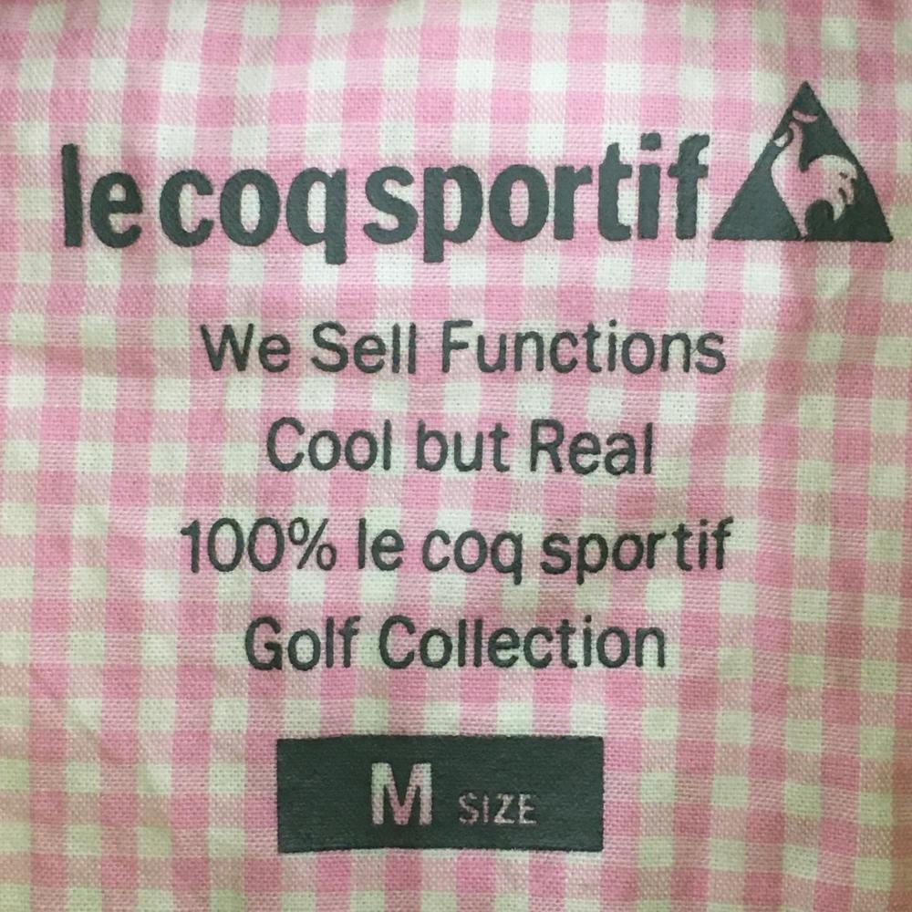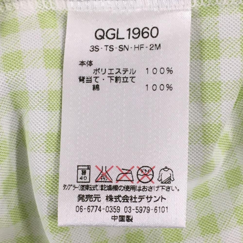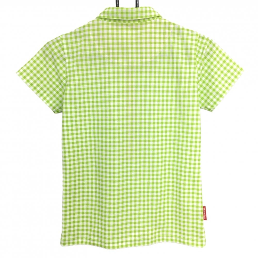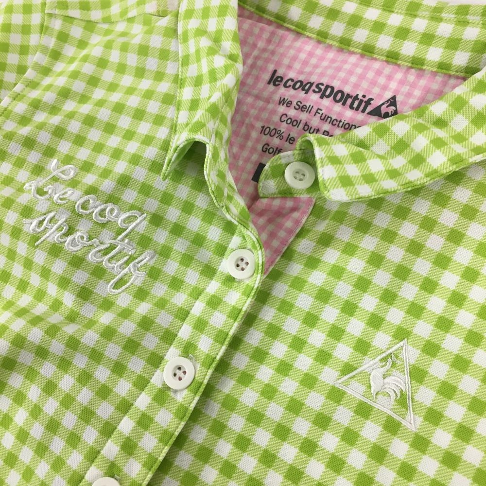 【超美品】ルコックゴルフ 半袖ポロシャツ 白×ライトグリーン ギンガムチェック 胸ロゴ レディース M ゴルフウェア le coq sportif