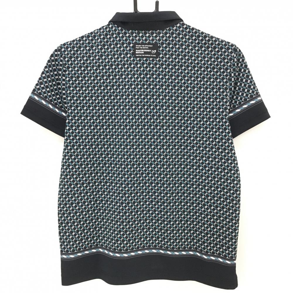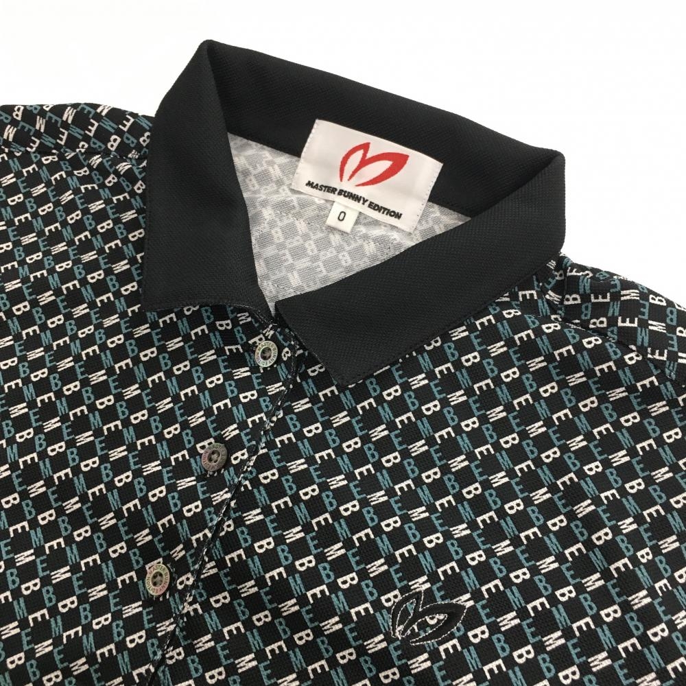 【超美品】マスターバニー 半袖ポロシャツ ネイビー×白 ロゴ総柄 レディース 0(S) ゴルフウェア 2024年モデル MASTER BUNNY EDITION