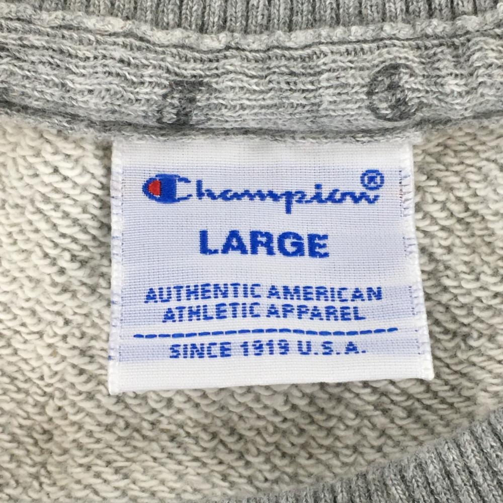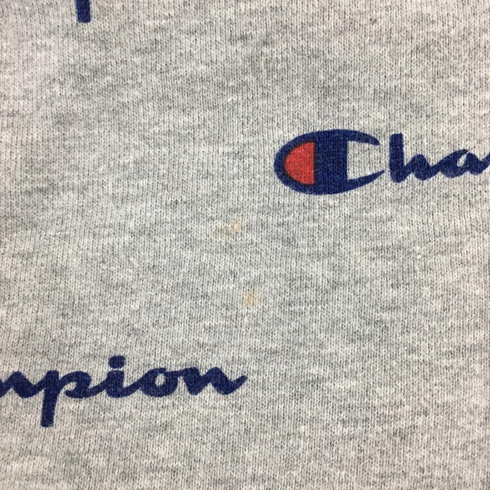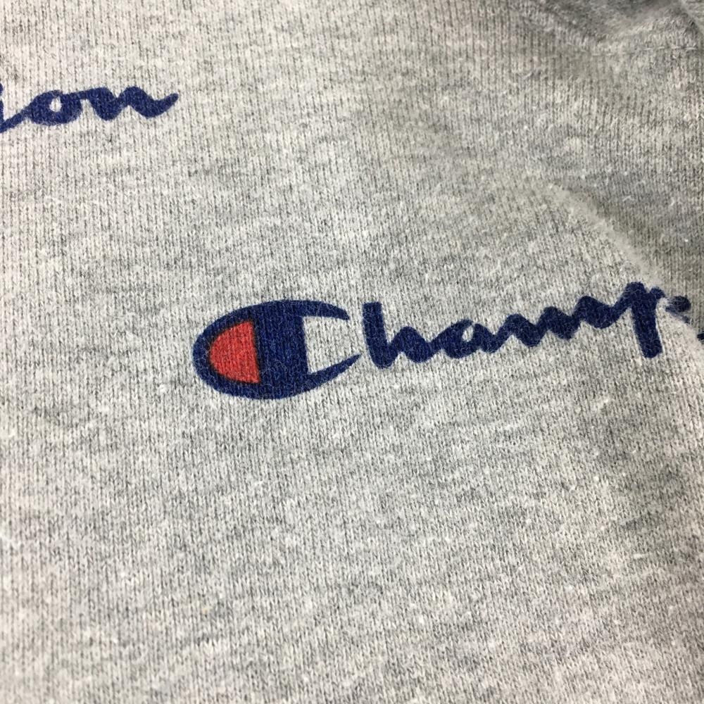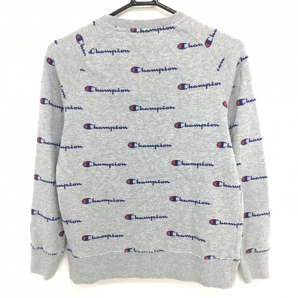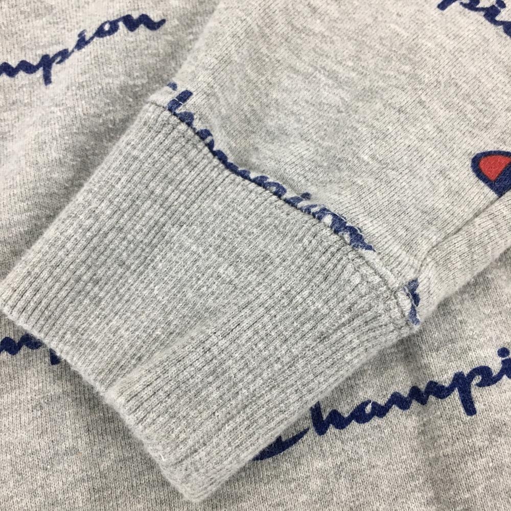 チャンピオン トレーナー 杢グレー×ネイビー×レッド ロゴ総柄 レディース LARGE ゴルフウェア Champion