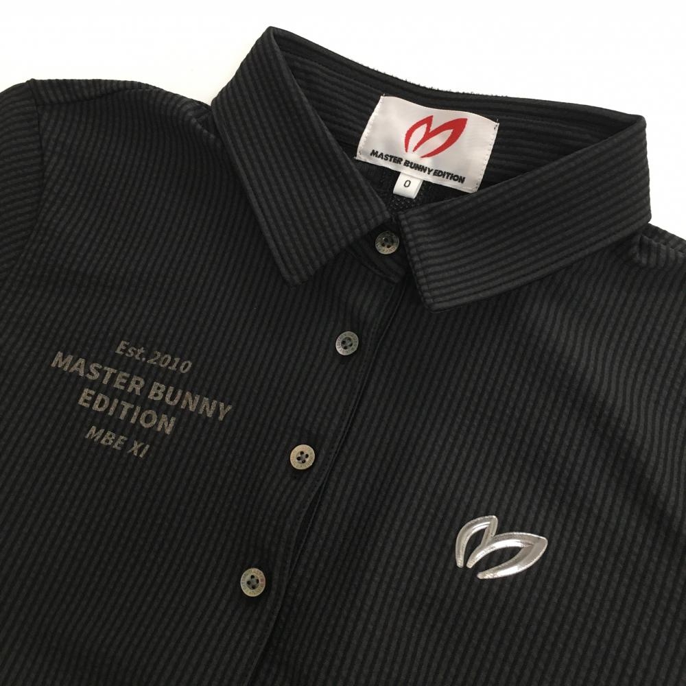 【超美品】マスターバニー 半袖ポロシャツ ダークグレー×ダークネイビー ストライプ レディース 0(S) ゴルフウェア MASTER BUNNY EDITION