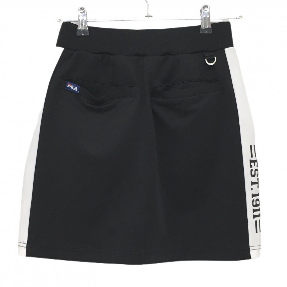 【美品】フィラゴルフ スカート 黒×白 サイドライン ストレッチ レディース M ゴルフウェア FILA GOLF