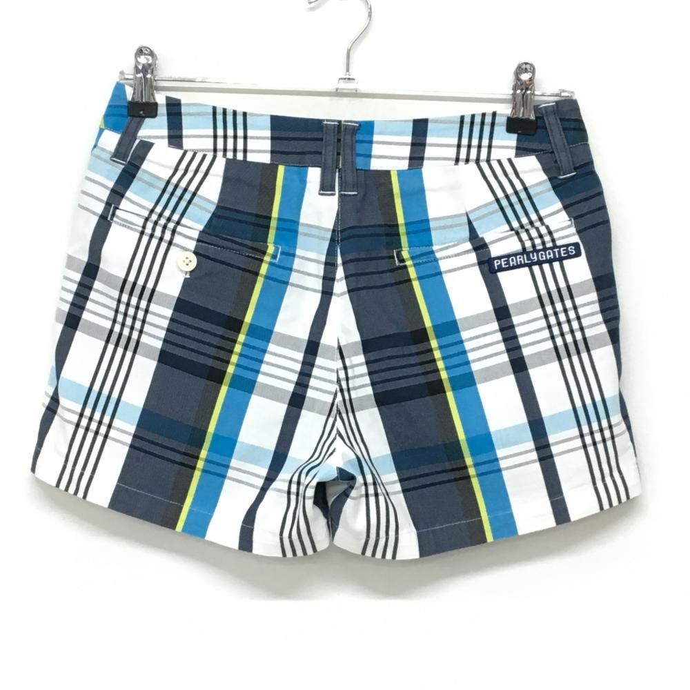 【超美品】パーリーゲイツ ショートパンツ 白×ネイビー チェック レディース 0(S) ゴルフウェア PEARLY GATES