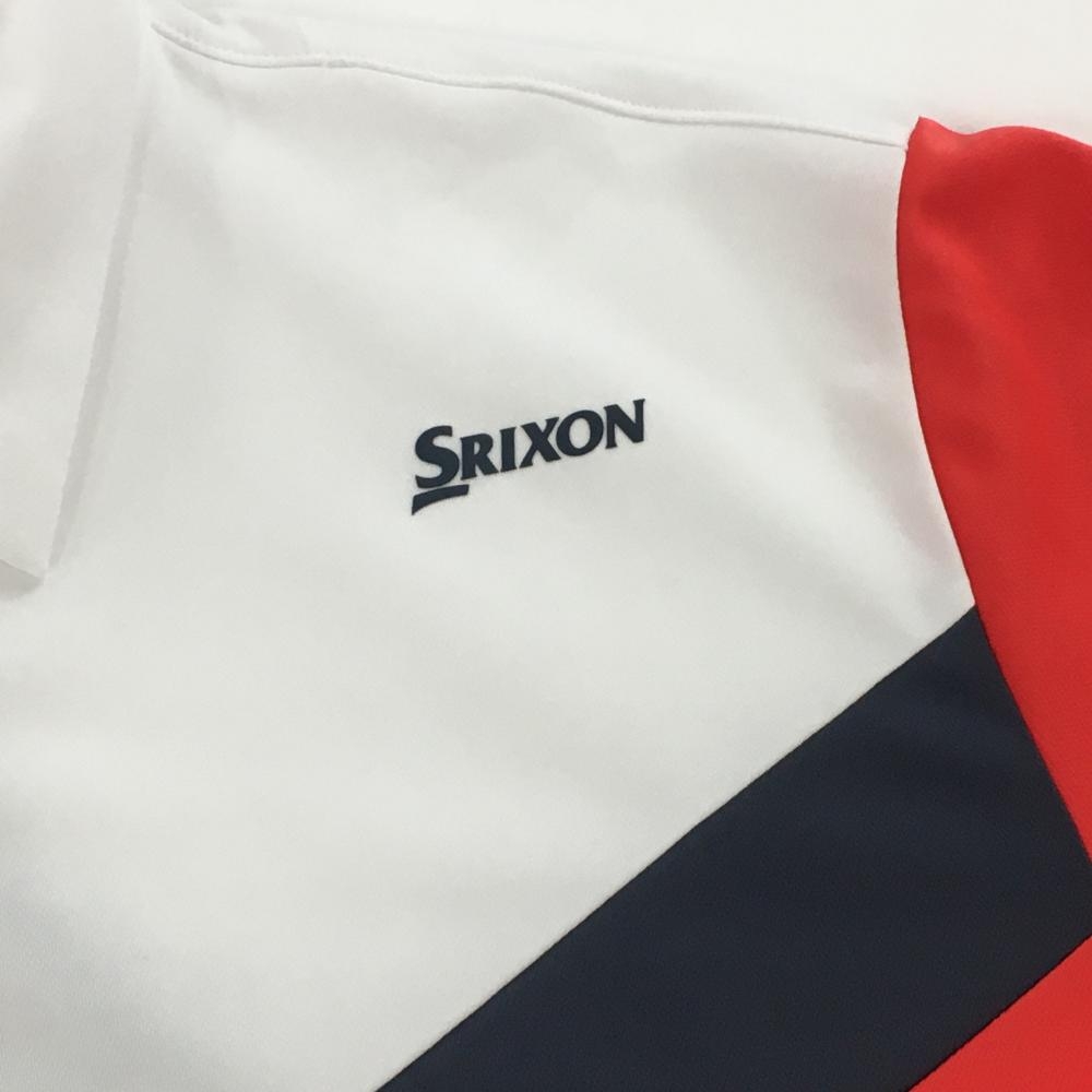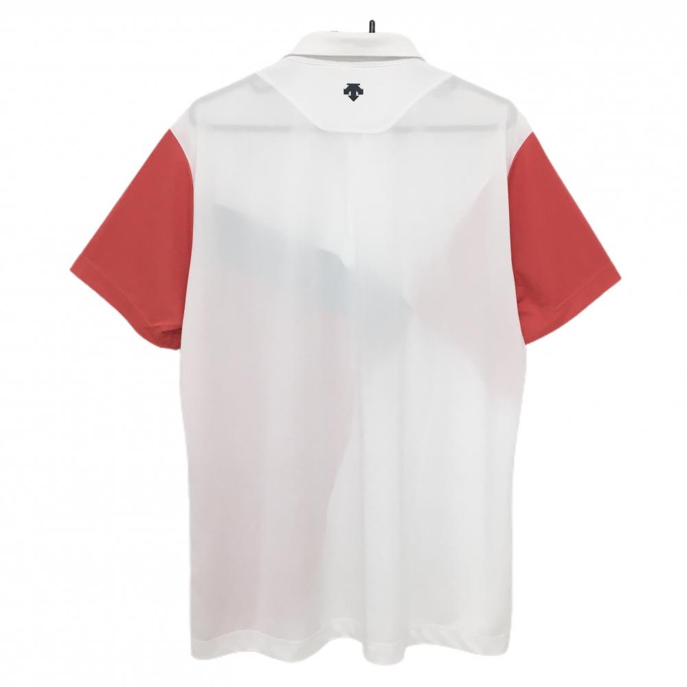 【超美品】スリクソンバイデサント 半袖ポロシャツ 白×レッド×グレー 切替 ロゴグレー メンズ 3L ゴルフウェア 大きいサイズ SRIXON