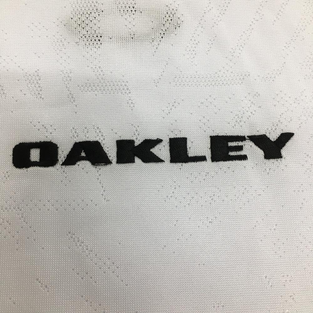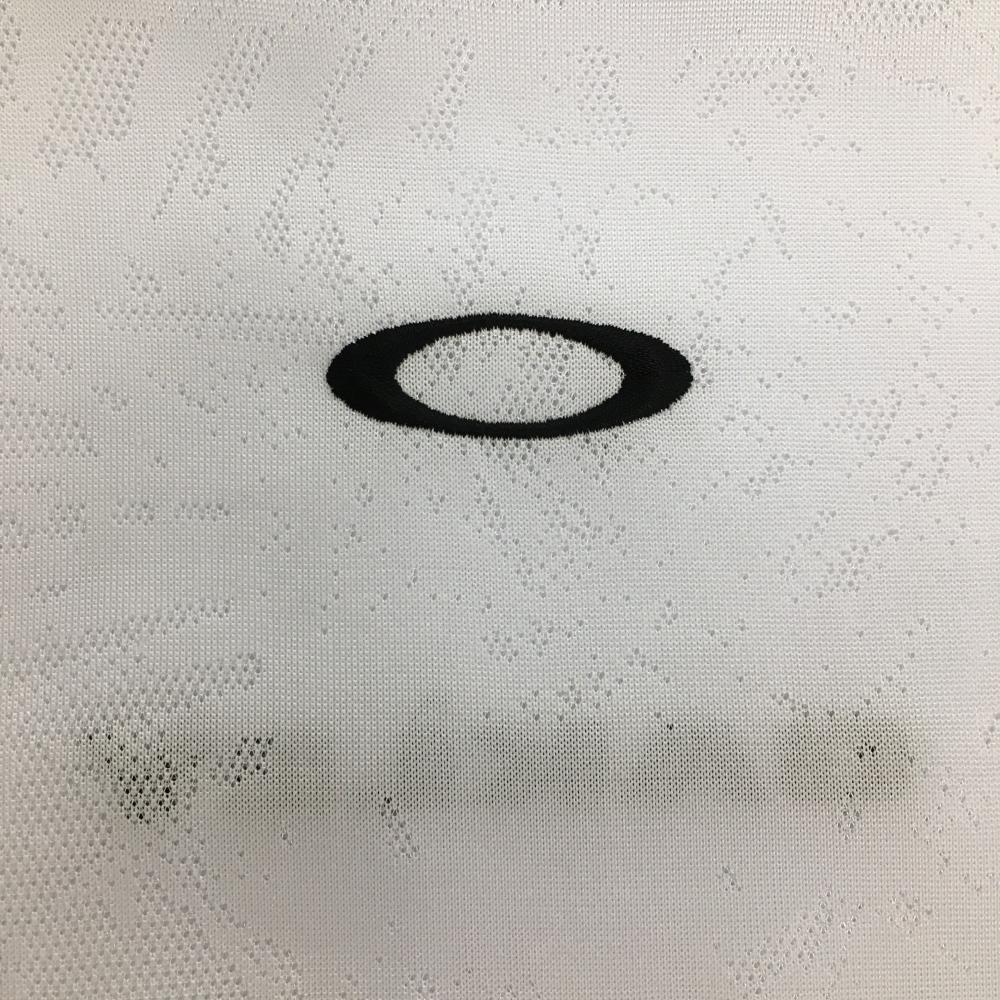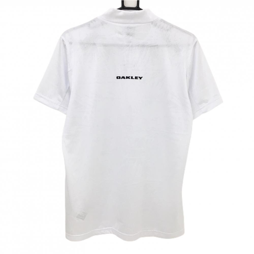 【超美品】オークリー 半袖ハイネックシャツ 白 総柄地模様 ロゴ刺しゅう黒 メンズ M ゴルフウェア 2024年モデル Oakley