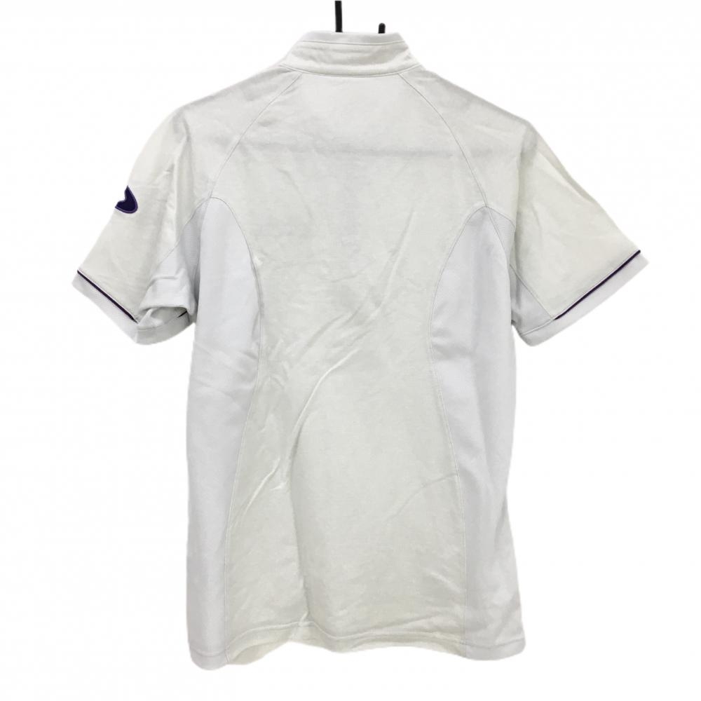 オークリー 半袖ハイネックシャツ オフホワイト×パープル 織生地 ハーフジップ 袖下・サイドメッシュ メンズ M ゴルフウェア Oakley
