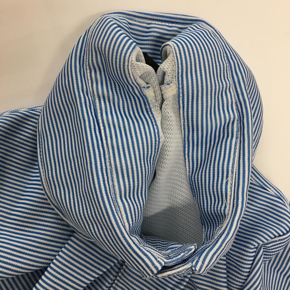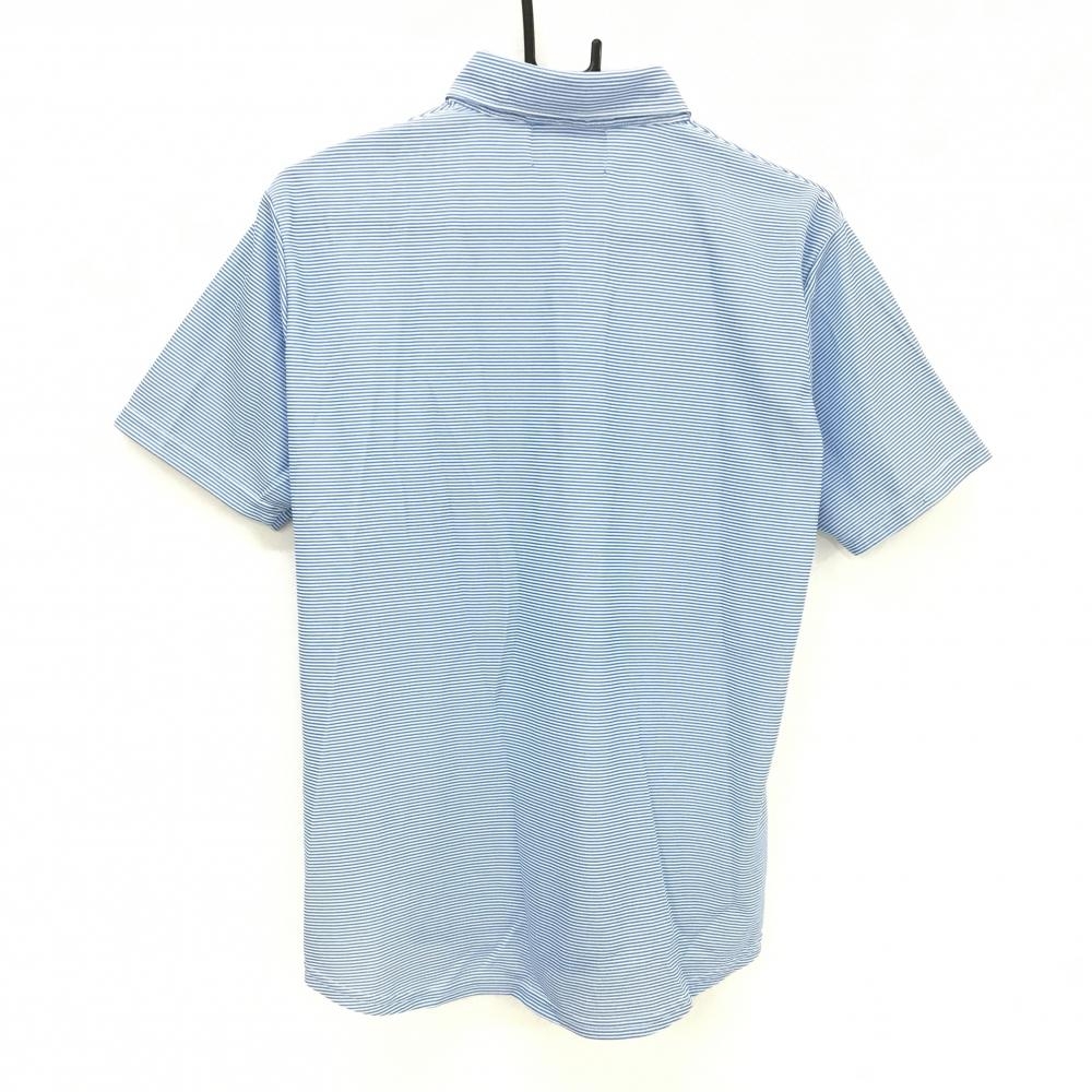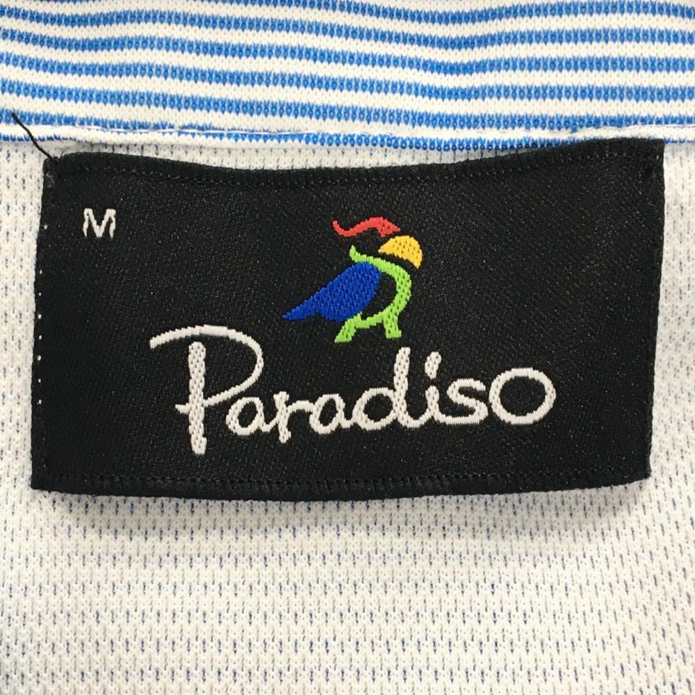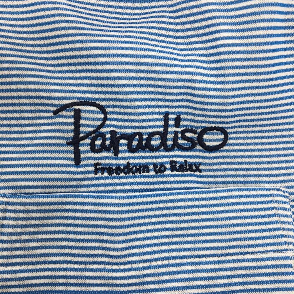 【美品】パラディーゾ 半袖ポロシャツ ブルー×白 ボーダー ロゴ刺しゅう メンズ M ゴルフウェア Paradiso