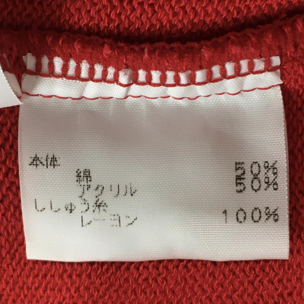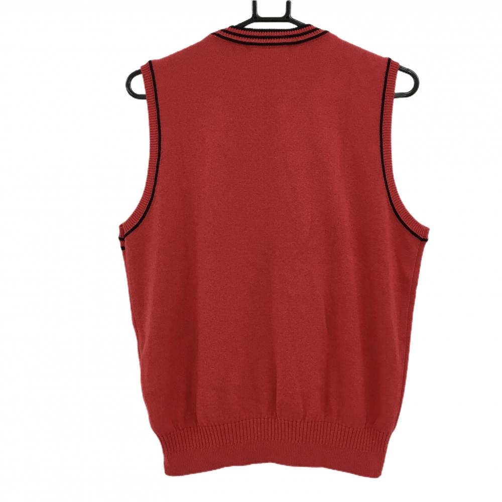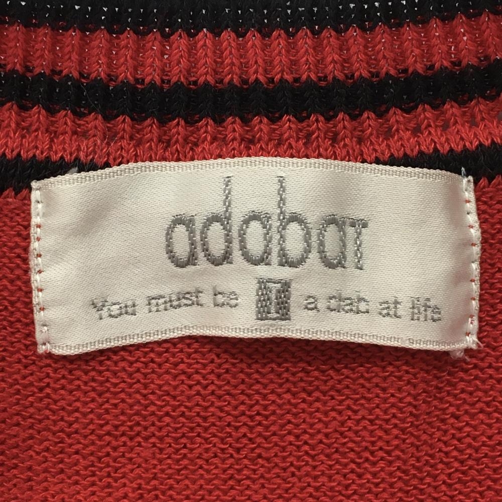 【美品】アダバット ニットベスト レッド×黒 前ボタン コットン混 レディース I(M) ゴルフウェア adabat