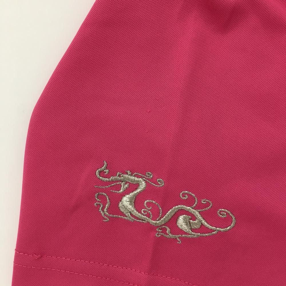 【美品】ダンスウィズドラゴン 半袖ポロシャツ ピンク スカル刺しゅう メンズ 3(L) ゴルフウェア Dance With Dragon