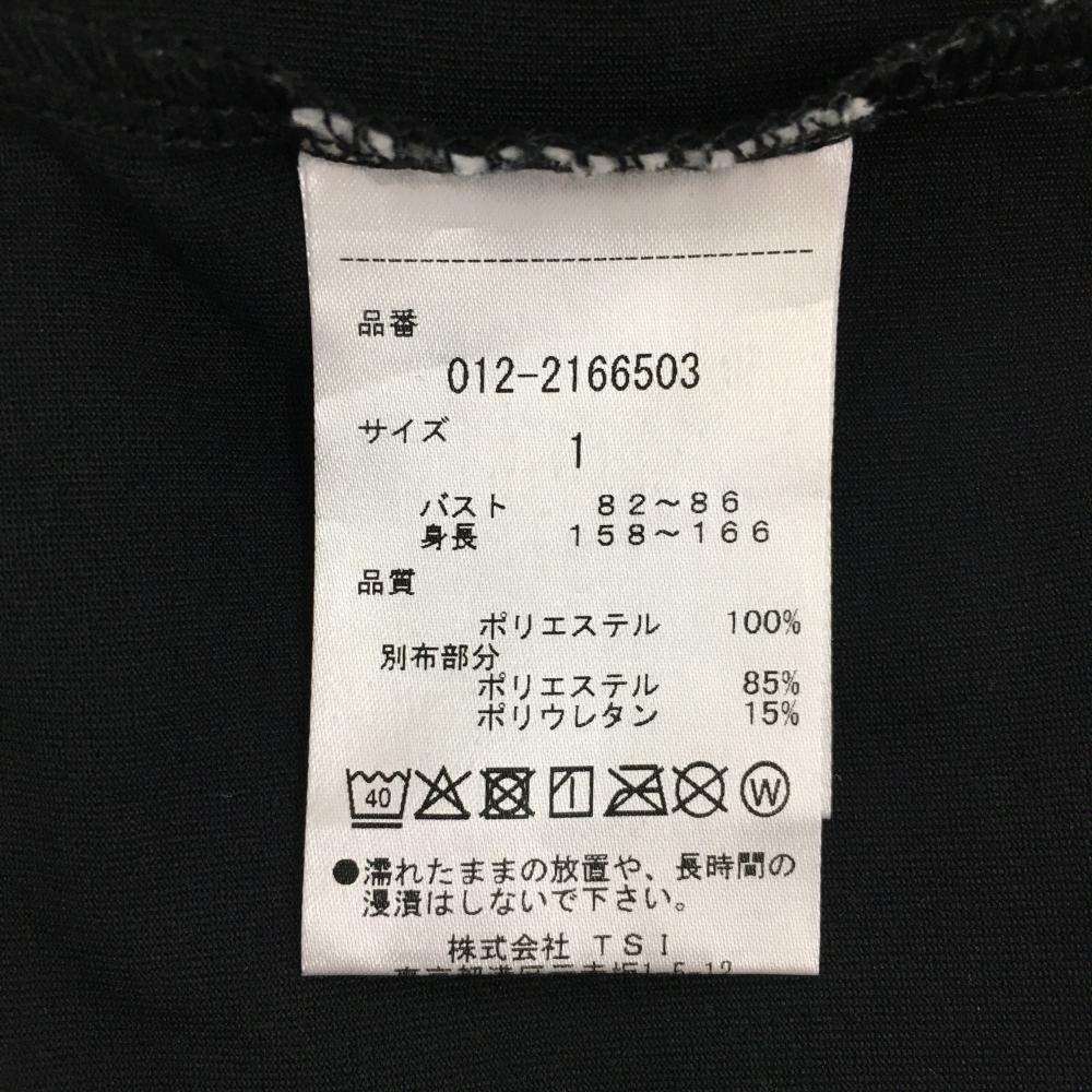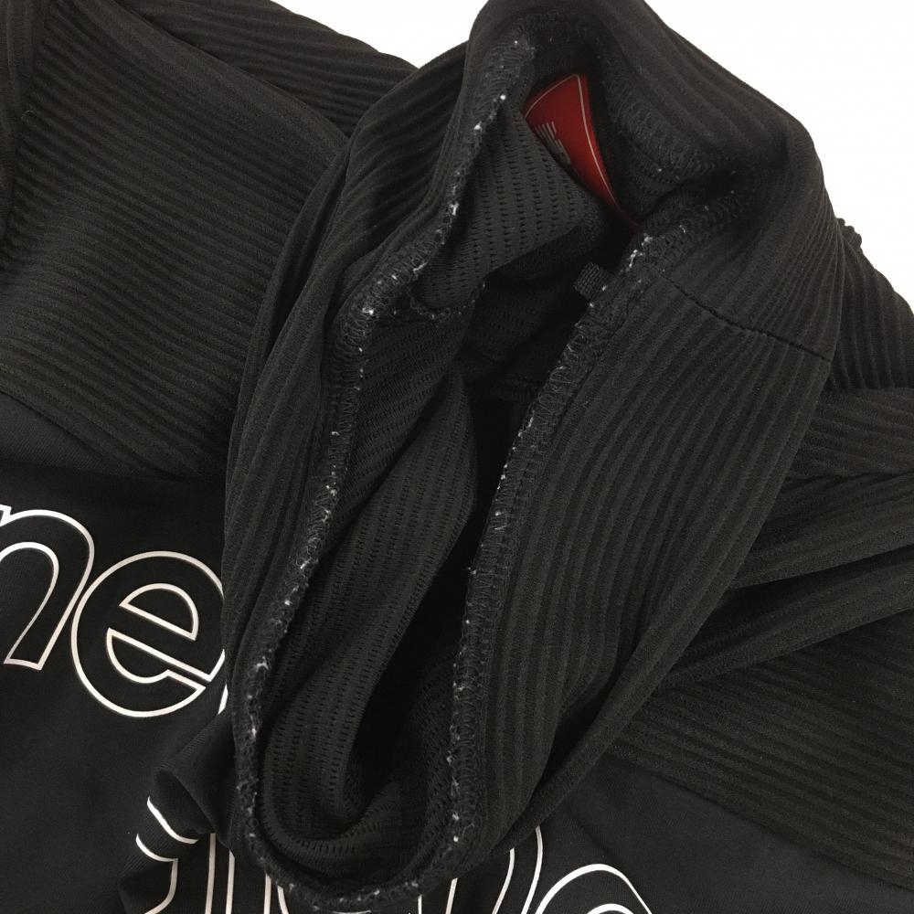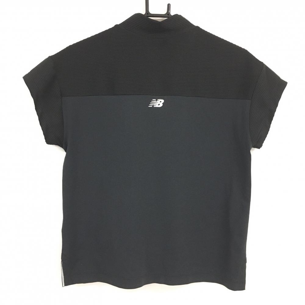 【超美品】ニューバランスゴルフ 半袖ハイネックシャツ 黒 胸上細ボーダー織生地 ロゴ白 レディース 1(M) ゴルフウェア New Balance