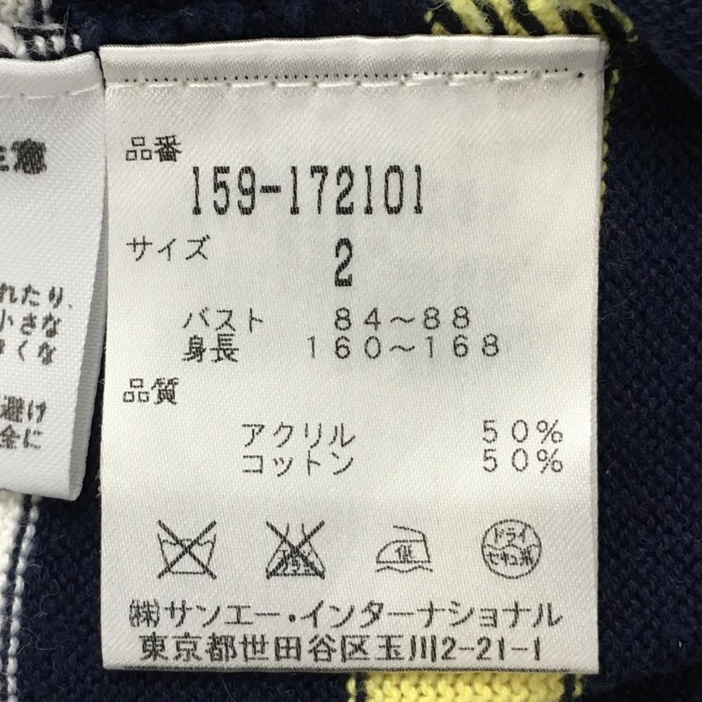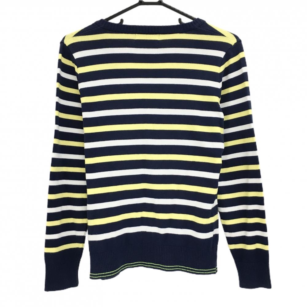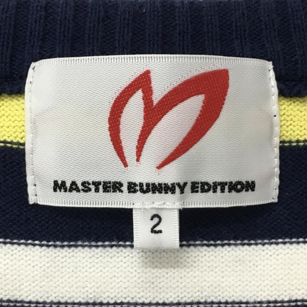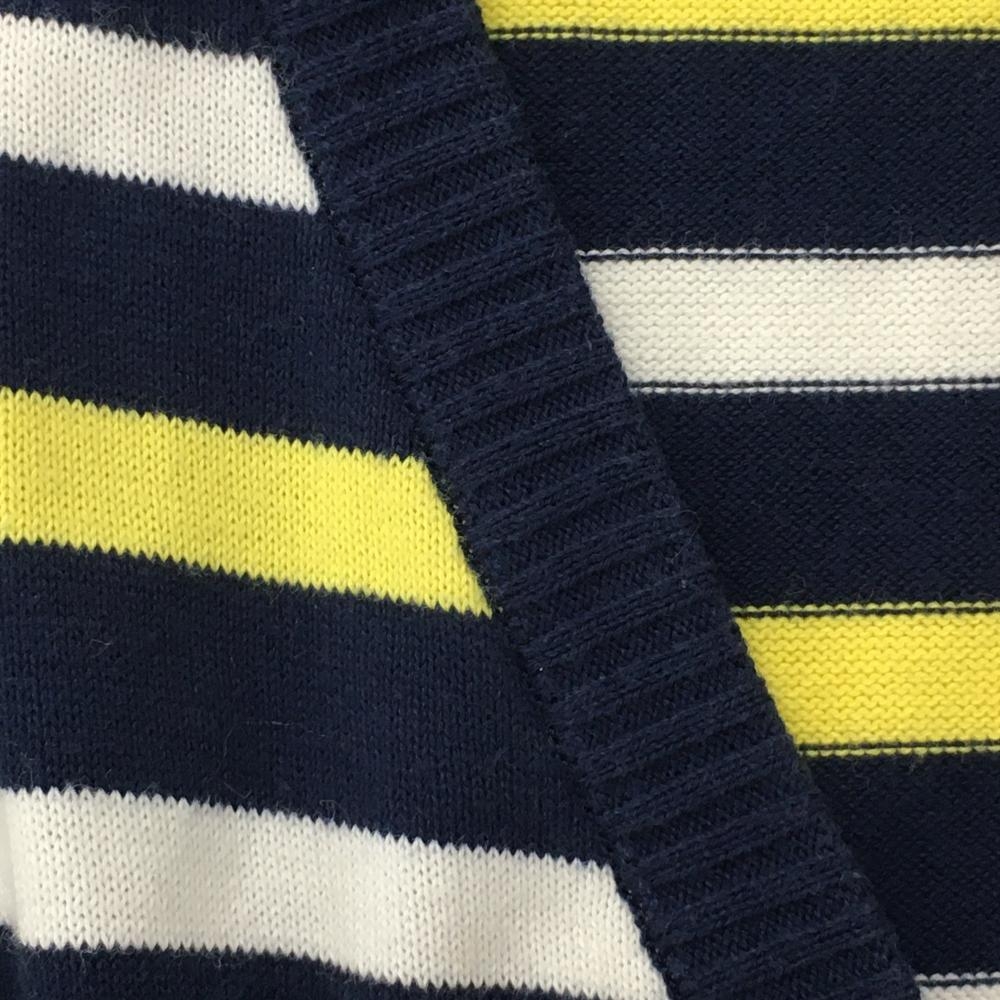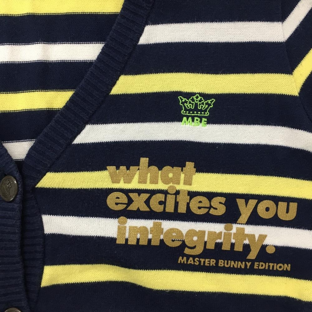 マスターバニー ニットカーディガン ネイビー×白×イエロー ボーダー アクリル混 レディース 2(L) ゴルフウェア MASTER BUNNY EDITION