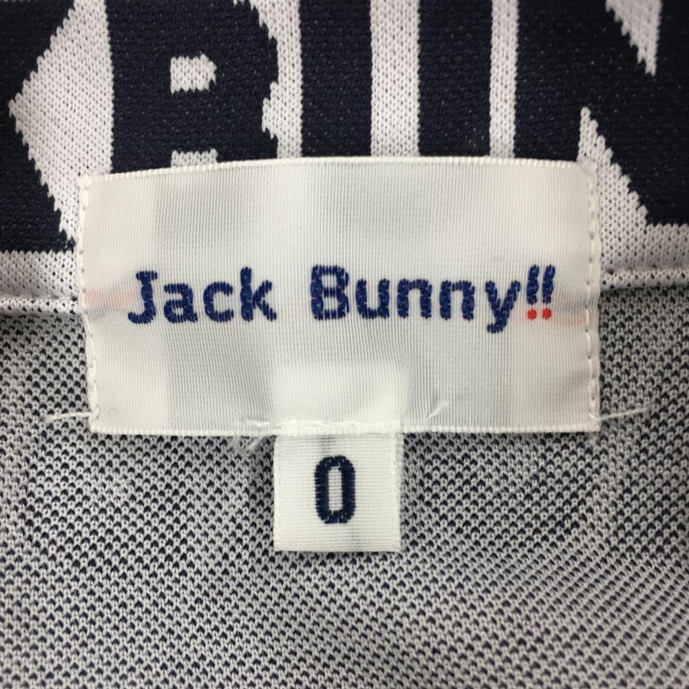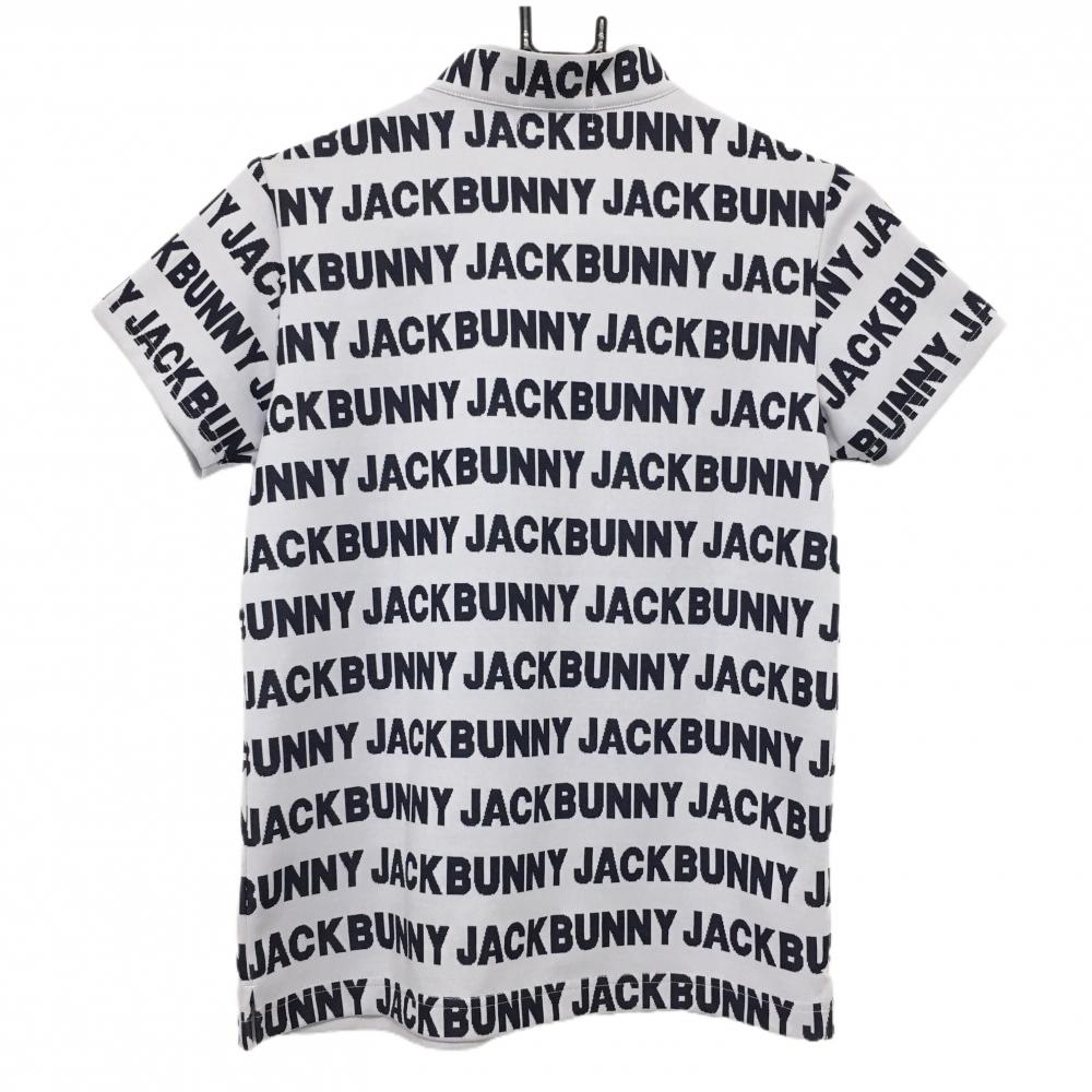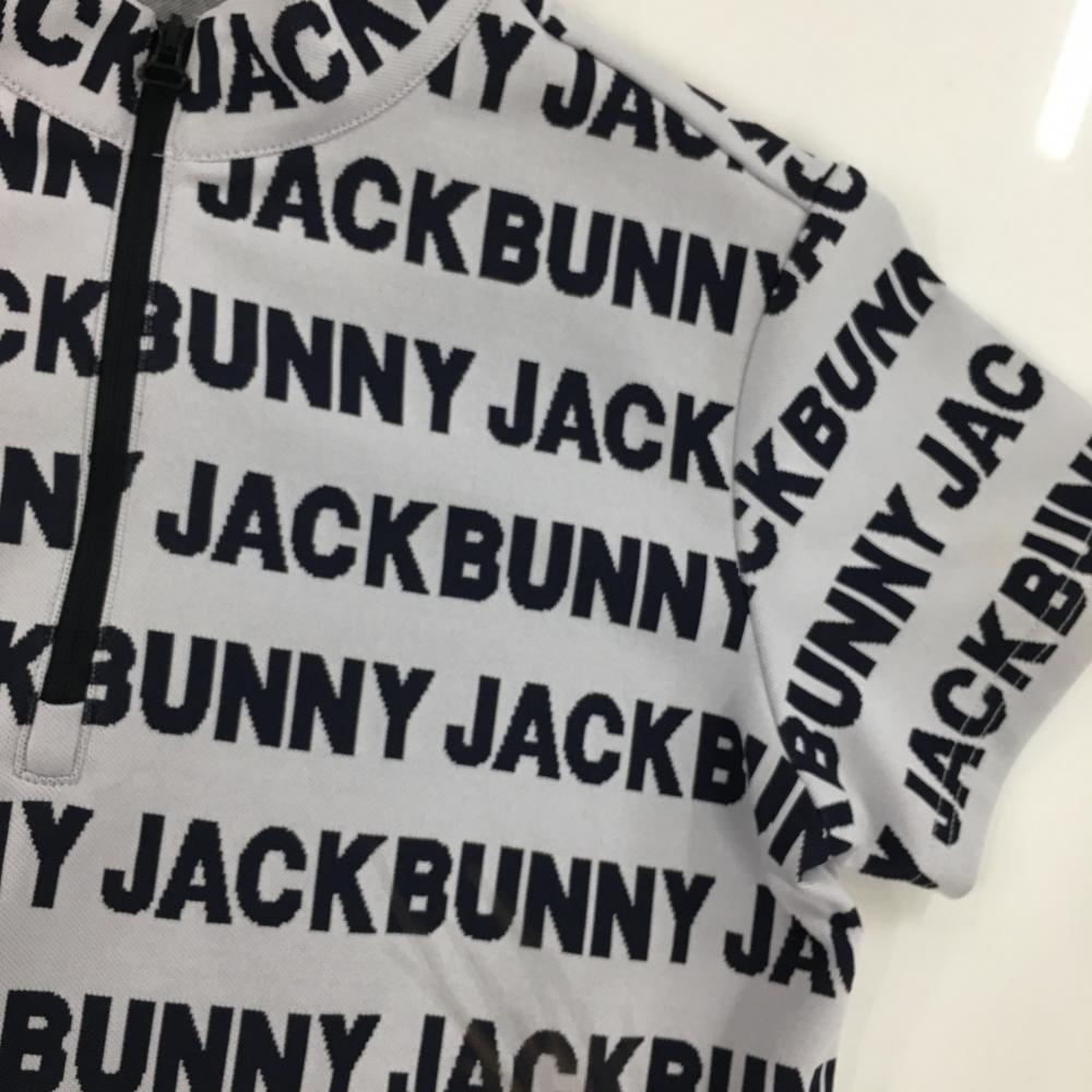【超美品】ジャックバニー 半袖ハイネックシャツ ライトグレー×ネイビー ロゴ総柄 ハーフジップ レディース 0(S) ゴルフウェア Jack Bunny