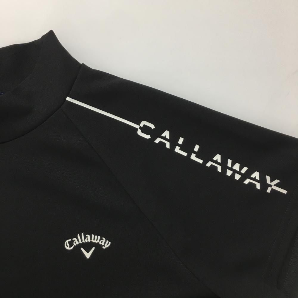 【超美品】キャロウェイ 半袖ハイネックシャツ 黒 袖ロゴ白 レディース L ゴルフウェア Callaway
