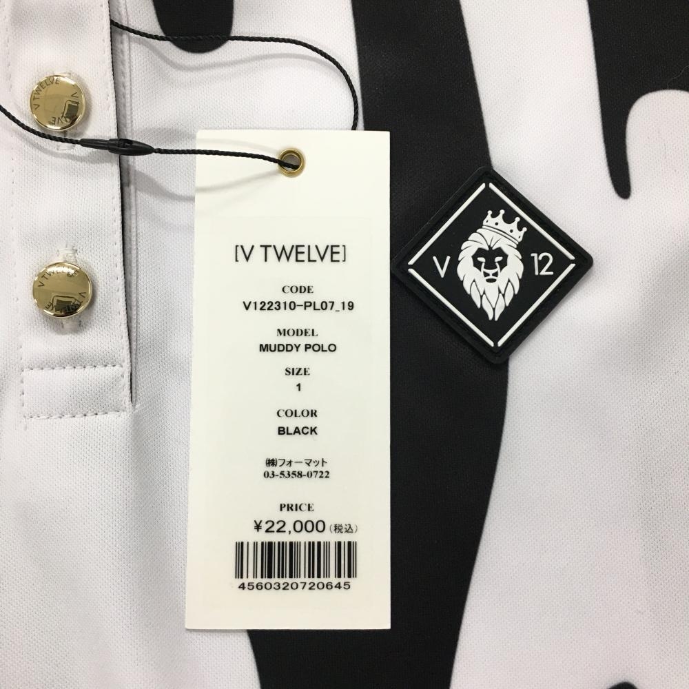 【新品】V12 半袖ポロシャツ 白×黒 総柄 レディース 1(M) ゴルフウェア 2023年モデル V12