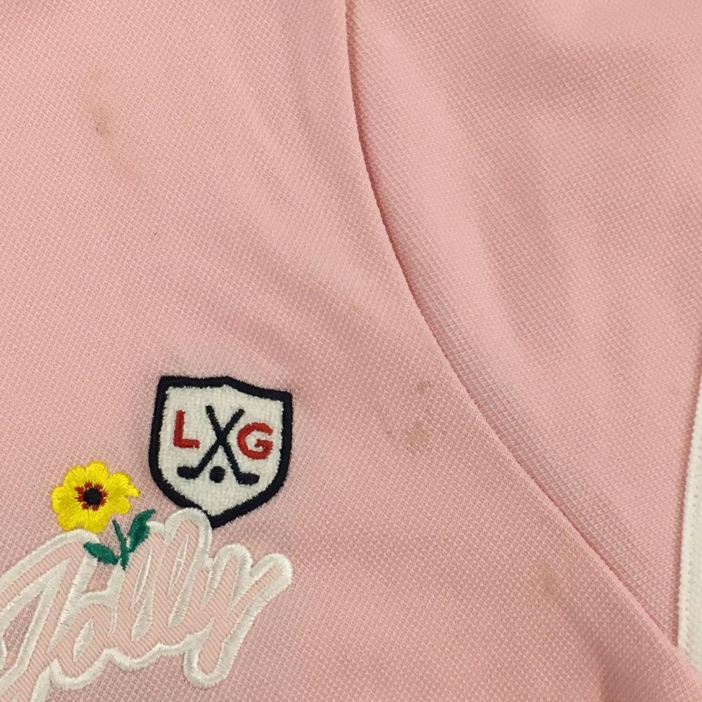 ルコックゴルフ 半袖ポロシャツ ピンク×白 袖ライン 紙タグ付 吸汗速乾 UVケア レディース LL ゴルフウェア le coq sportif