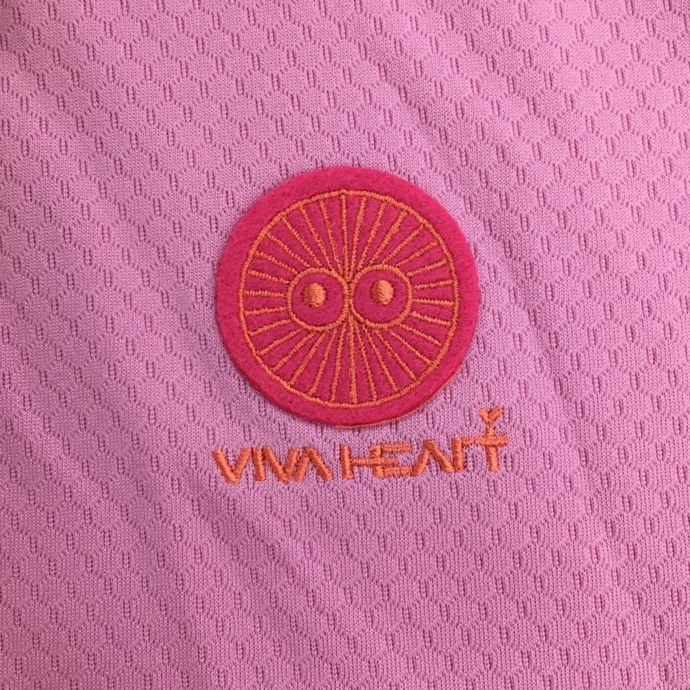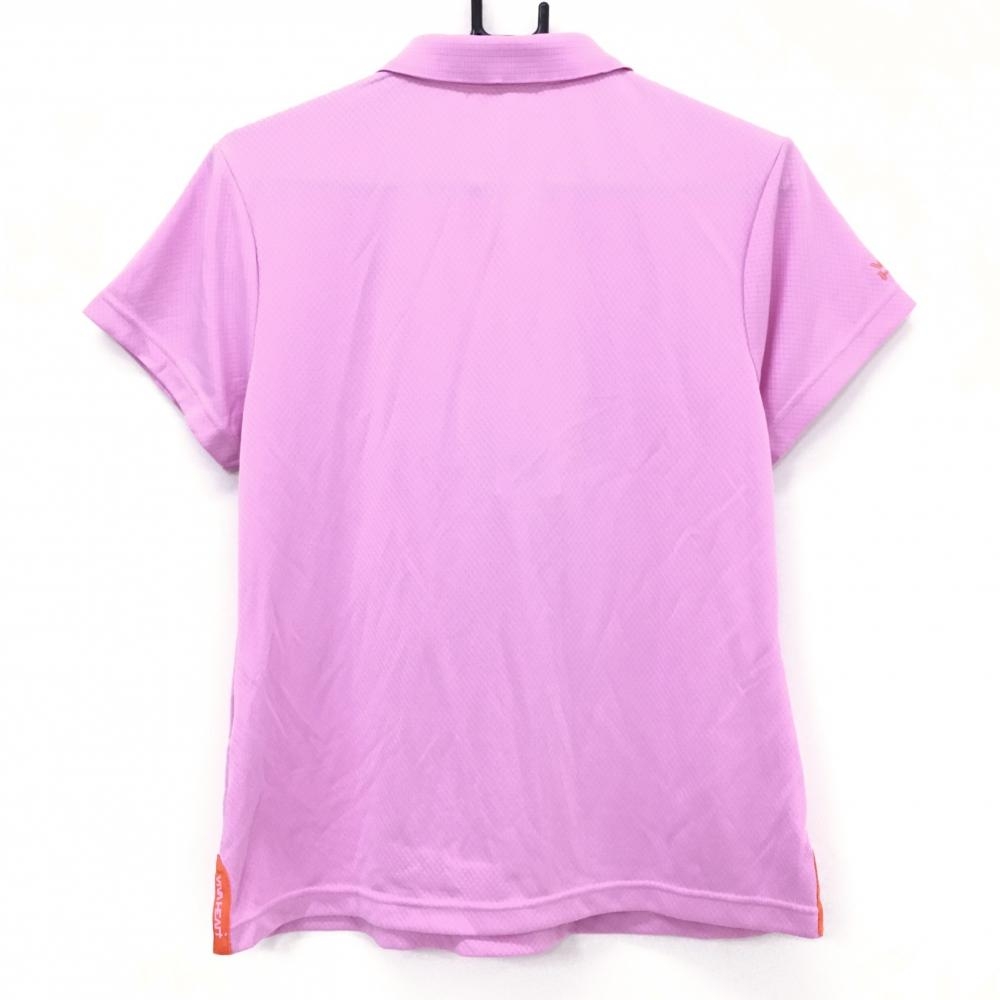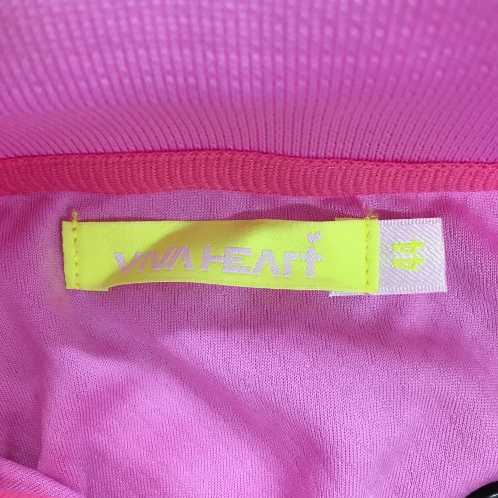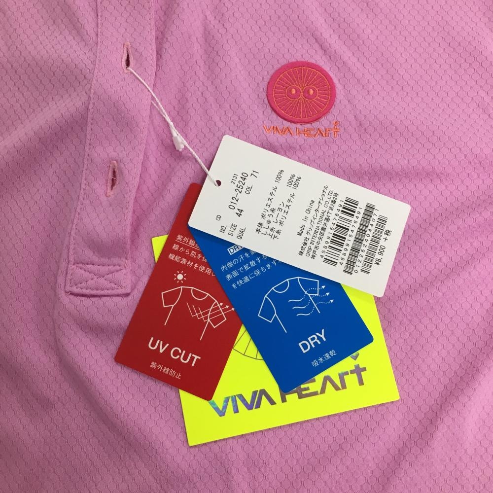 【新品】ビバハート 半袖ポロシャツ ピンク×オレンジ 地模様 襟裏ボーダー 吸水速乾 レディース 44(XL) ゴルフウェア VIVA HEART