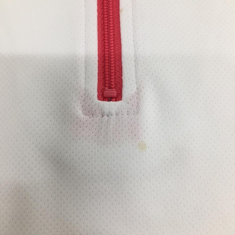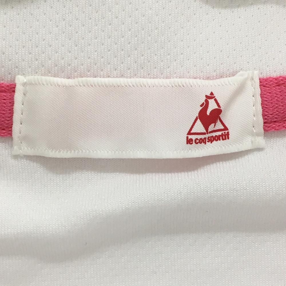 【美品】ルコック 半袖ハイネックシャツ 白 ハーフジップ ロゴピンク レディース L ゴルフウェア le coq sportif