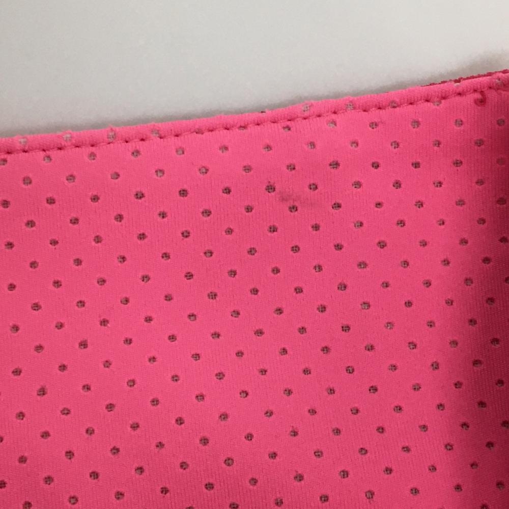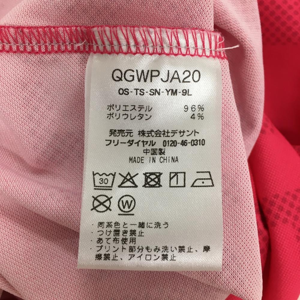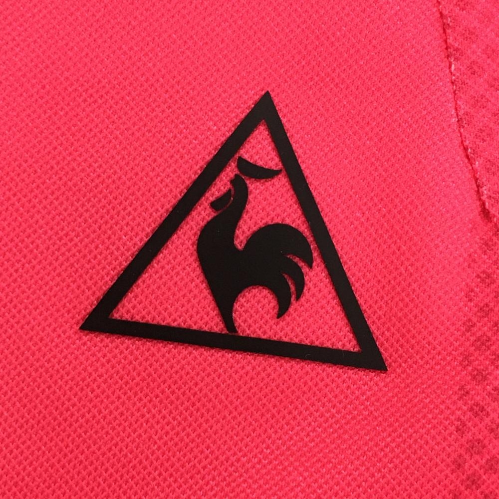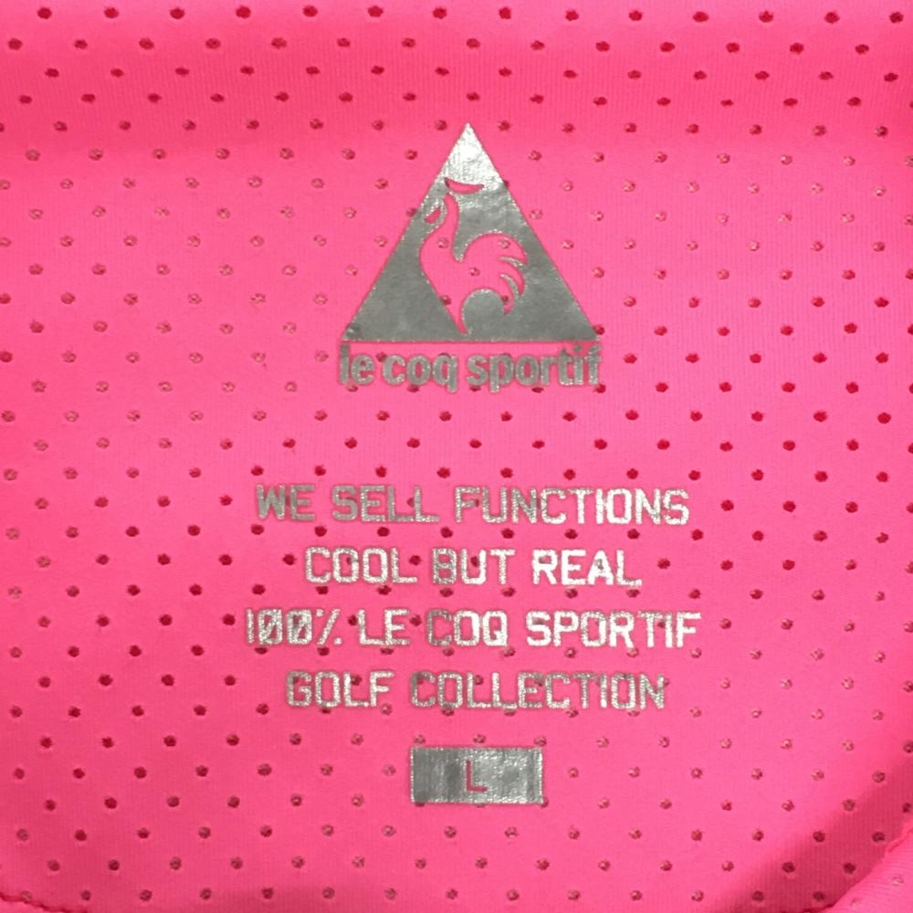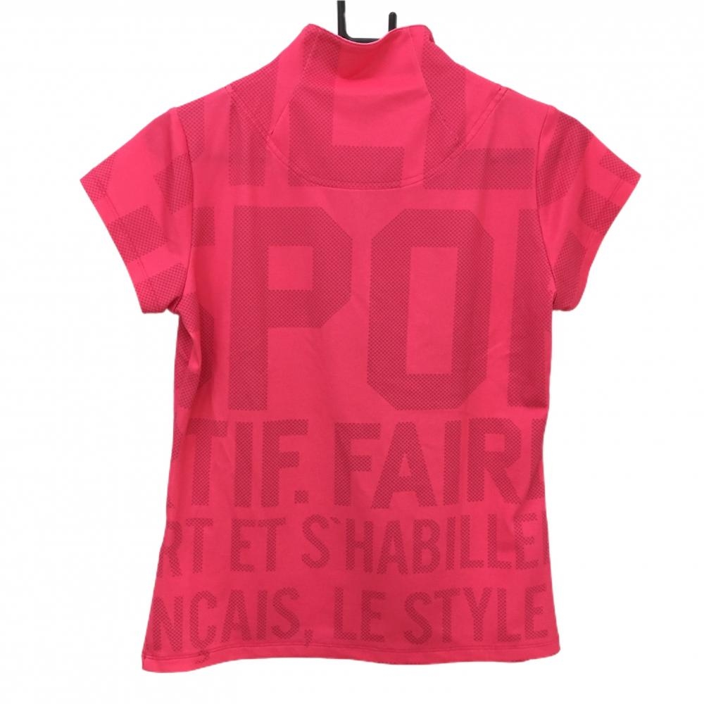 【美品】ルコックゴルフ 半袖ハイネックシャツ ピンク 英字柄 ハーフジップ レディース L ゴルフウェア le coq sportif