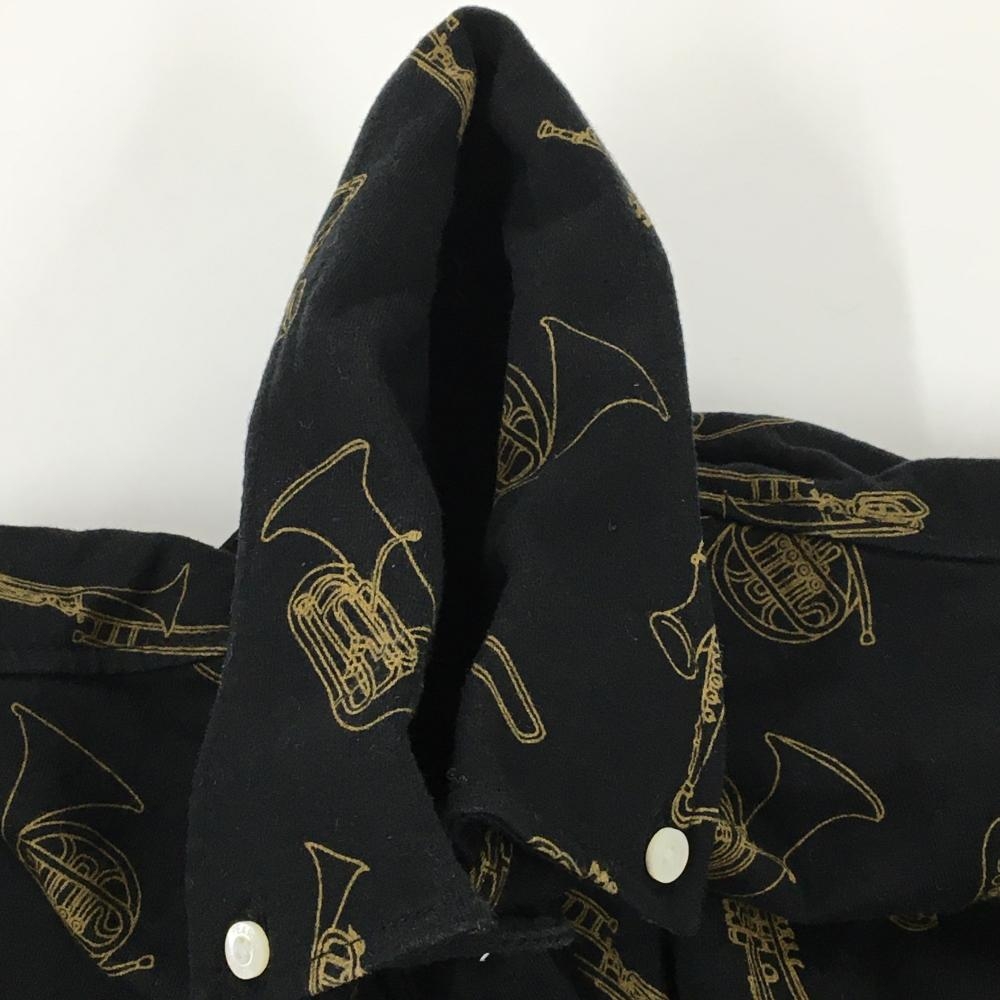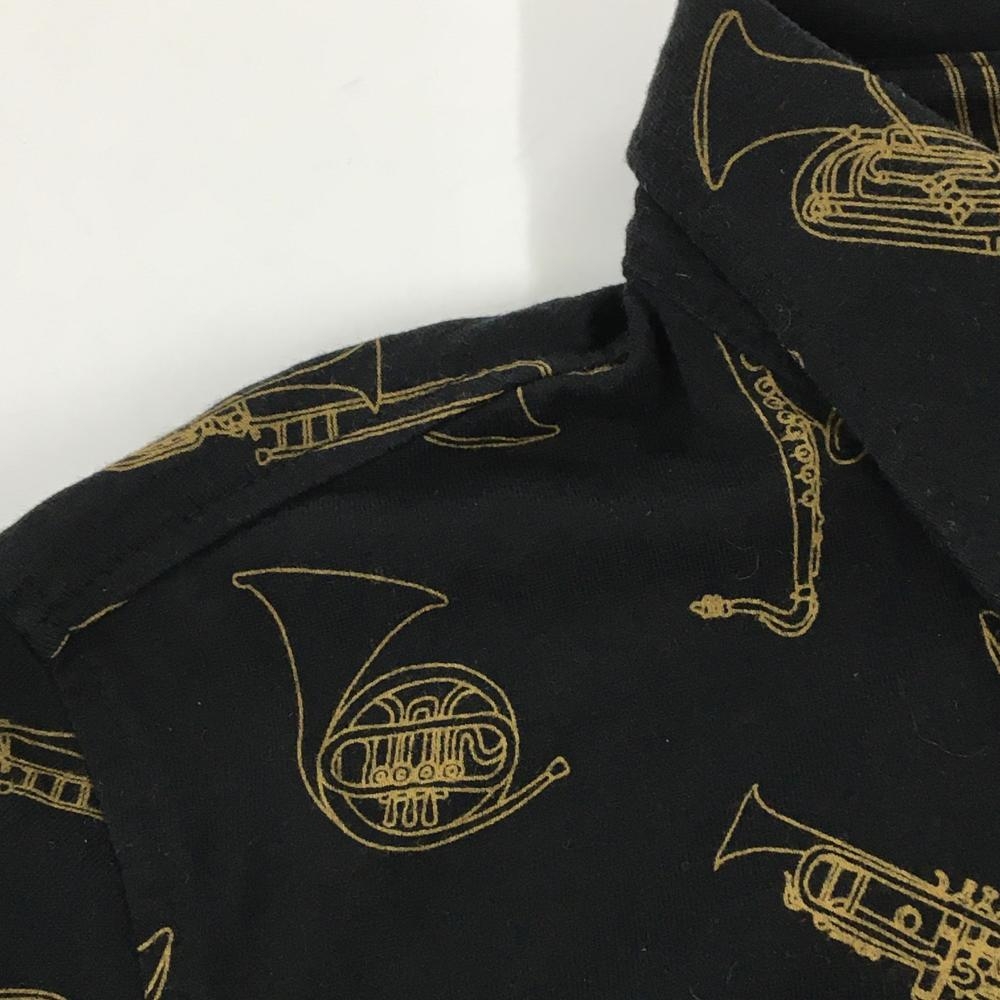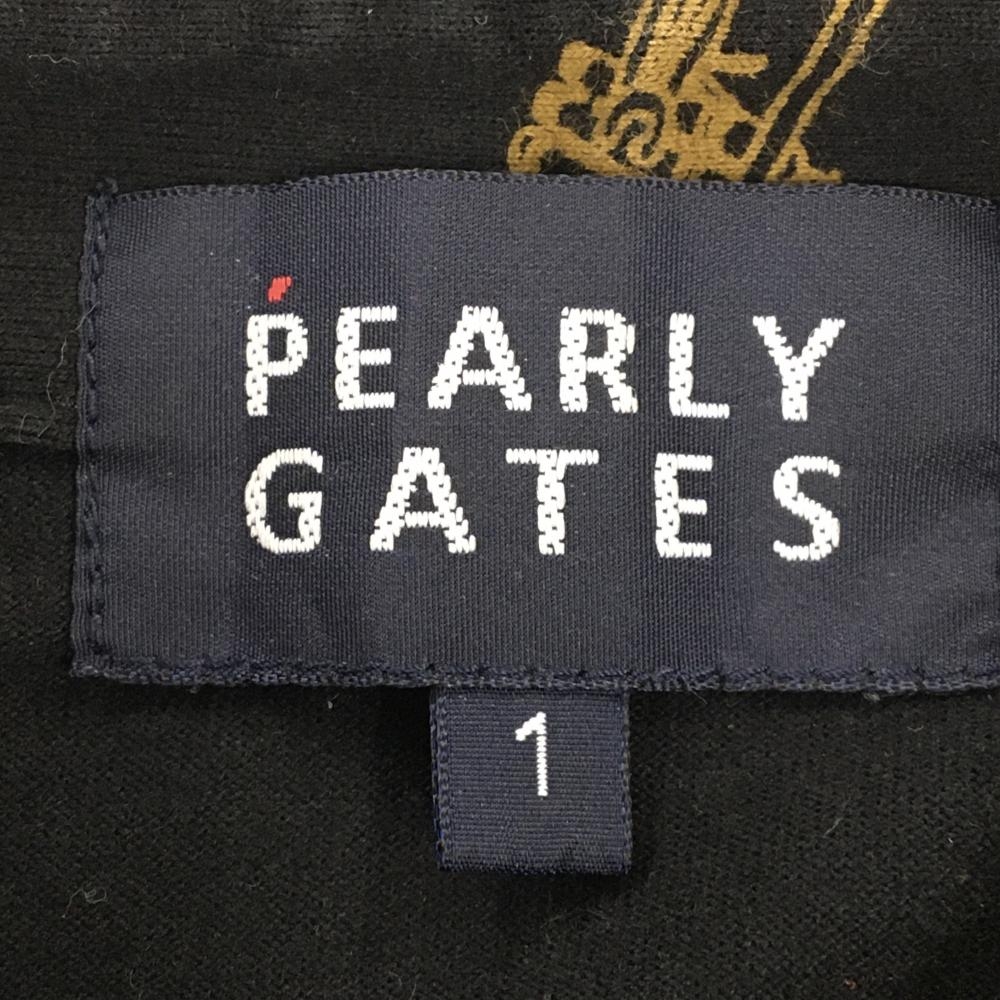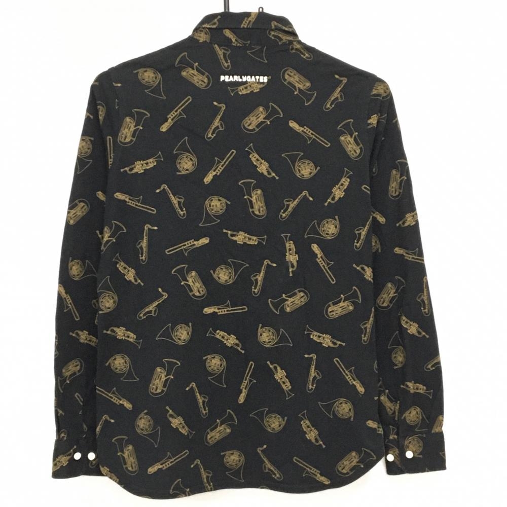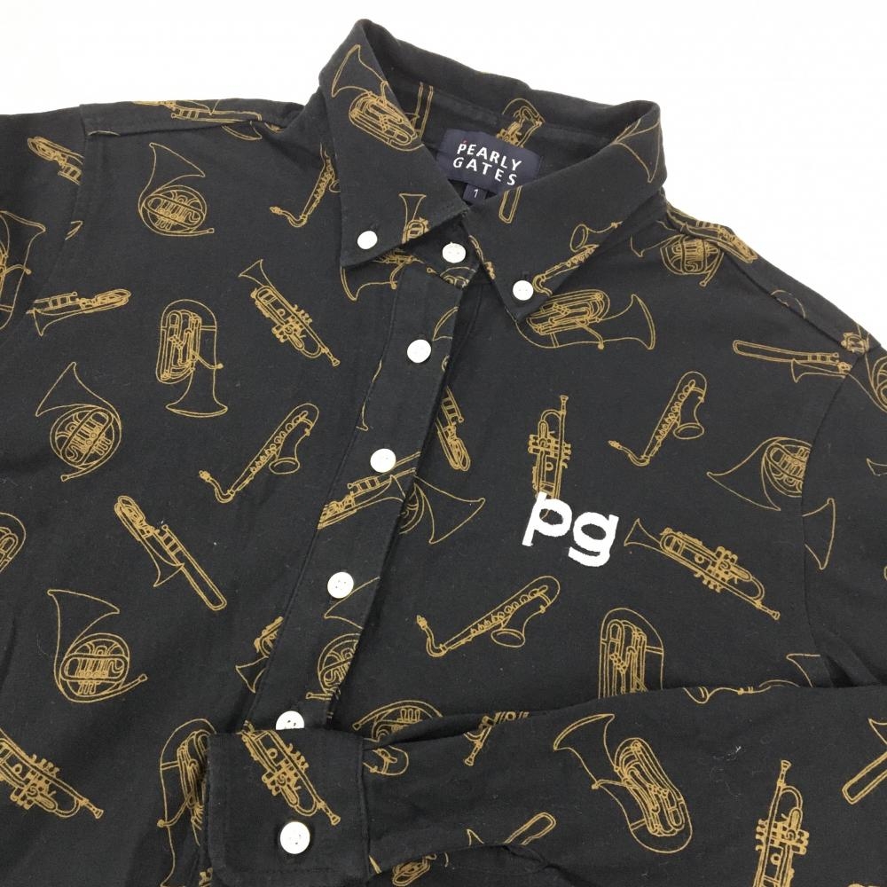 パーリーゲイツ 長袖ポロシャツ 黒×ブラウン 楽器総柄 ボタンダウン レディース 1(M) ゴルフウェア PEARLY GATES