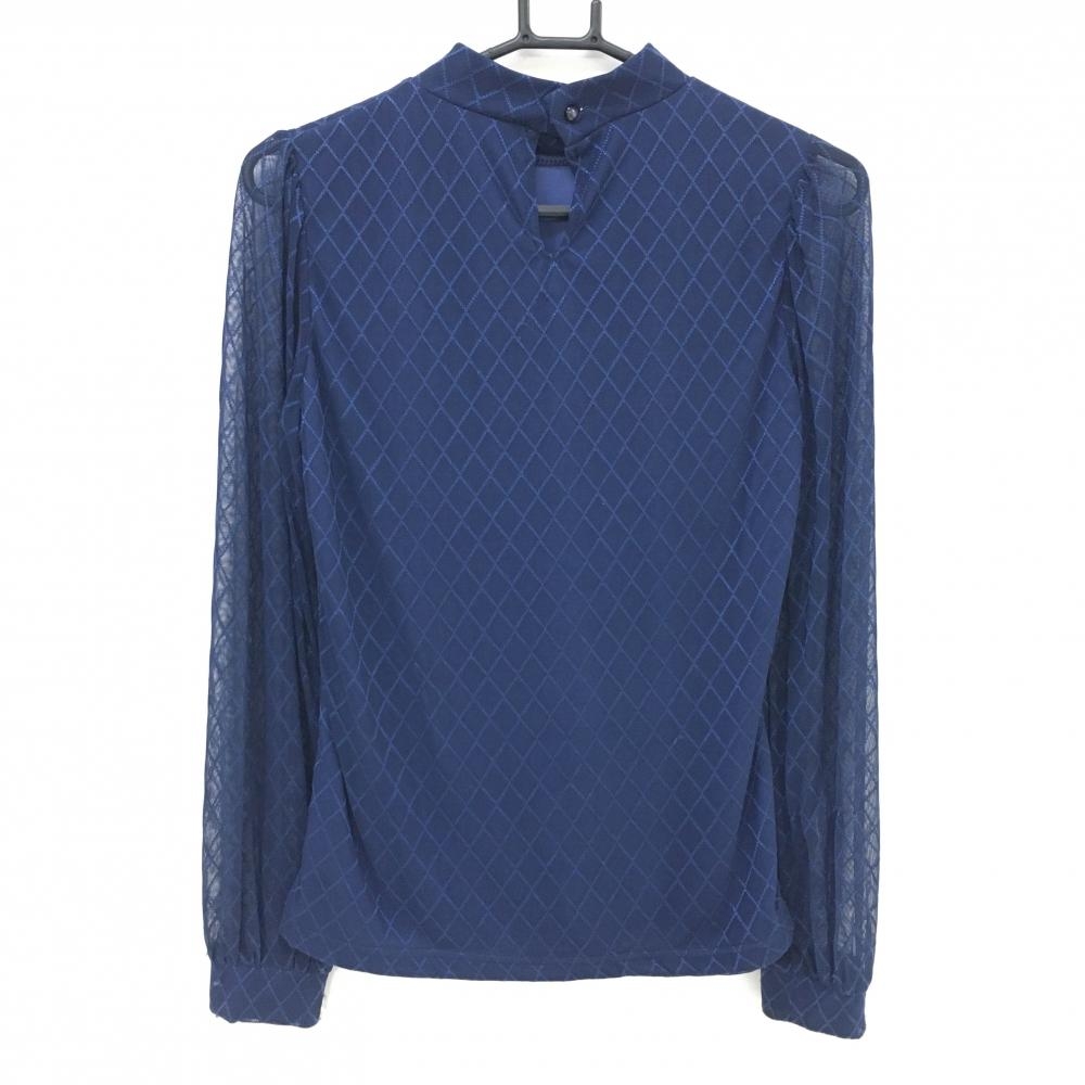 キスオンザグリーン 長袖ハイネックシャツ ネイビー ダイヤ柄 袖透け感 レディース 3(L) ゴルフウェア kiss on the green