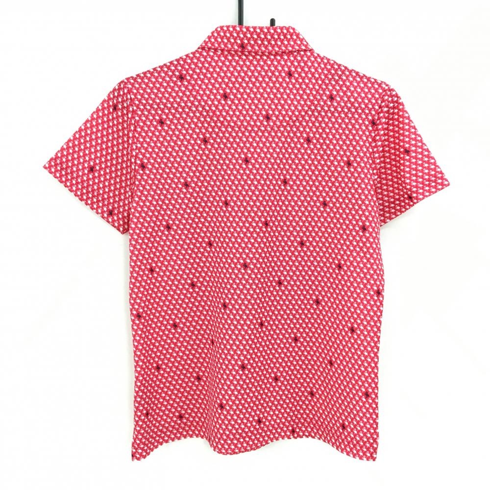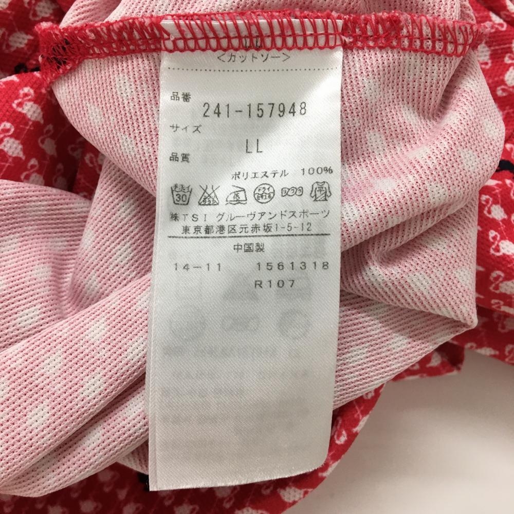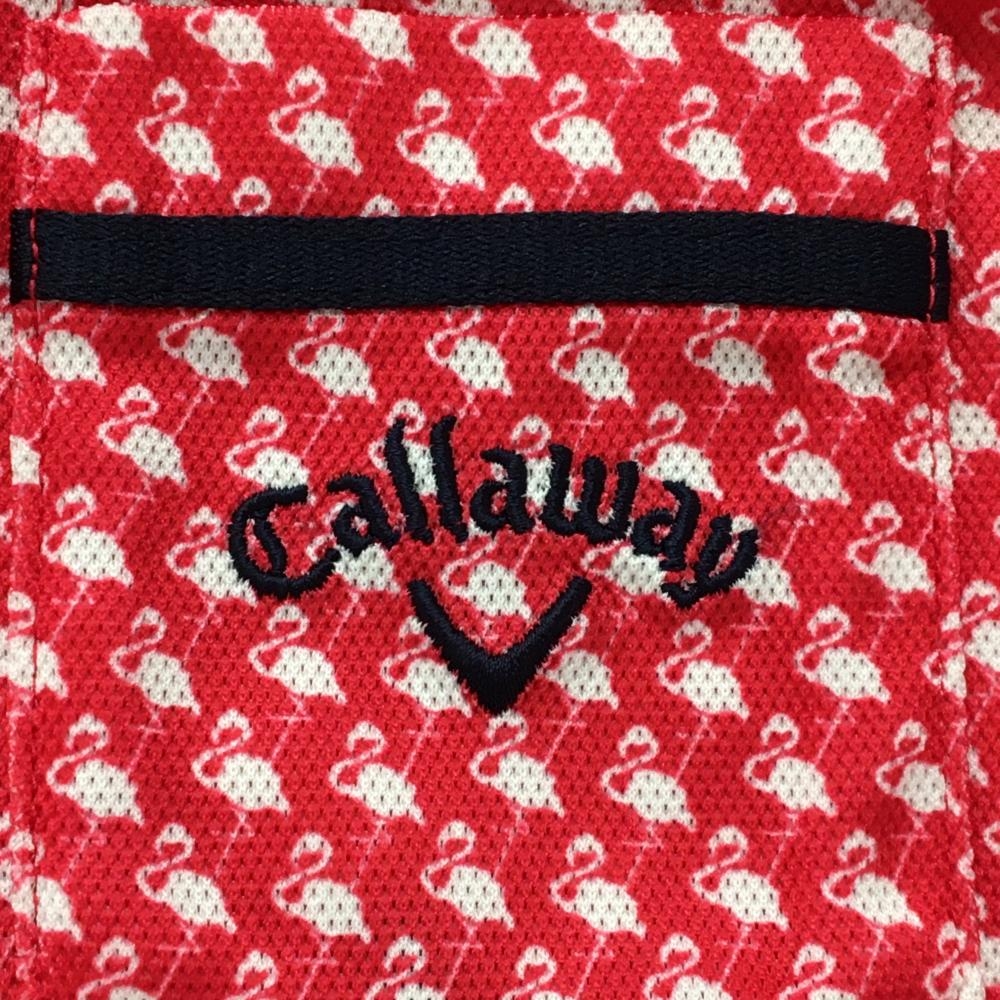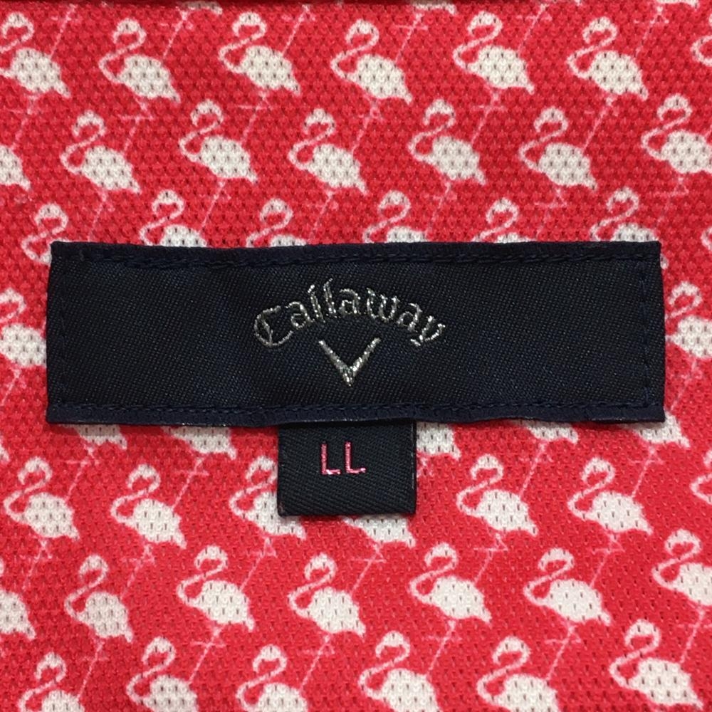 【超美品】キャロウェイ 半袖ポロシャツ レッドピンク×白 フラミンゴ柄 胸ポケット ロゴ刺しゅう レディース LL ゴルフウェア Callaway