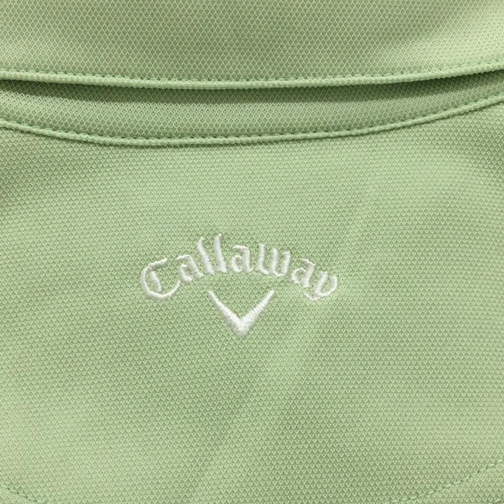 【超美品】キャロウェイ 半袖ポロシャツ ライトグリーン系×白 ビッグロゴプリント レディース L ゴルフウェア Callaway