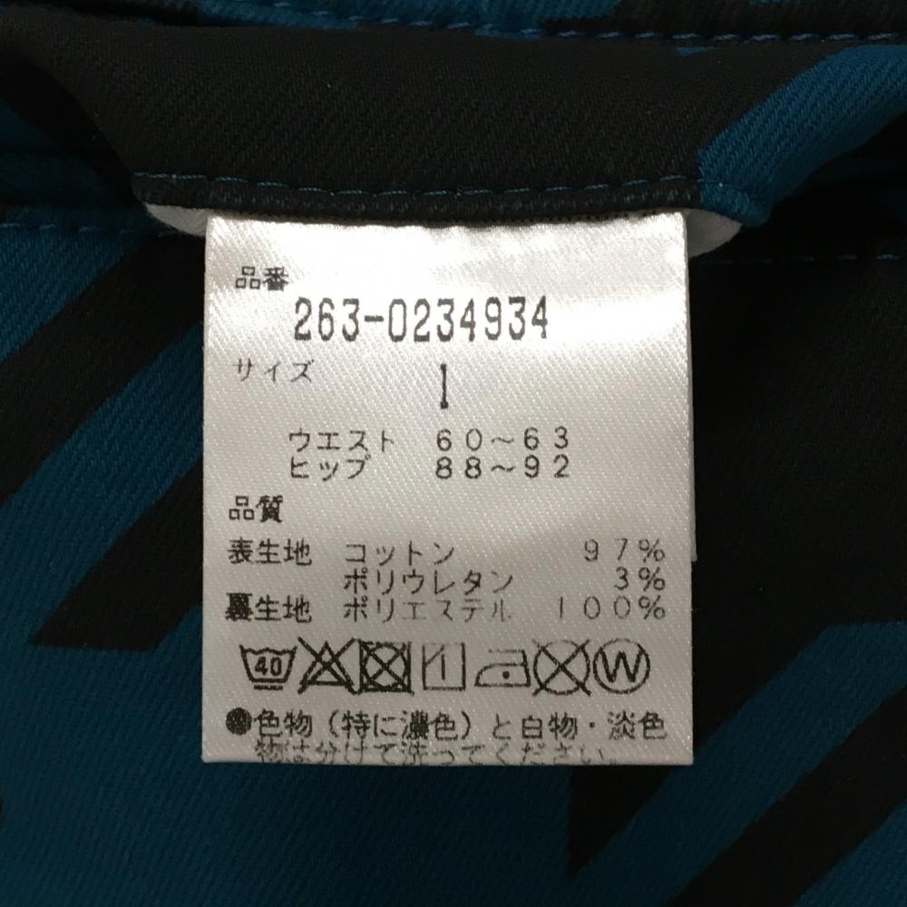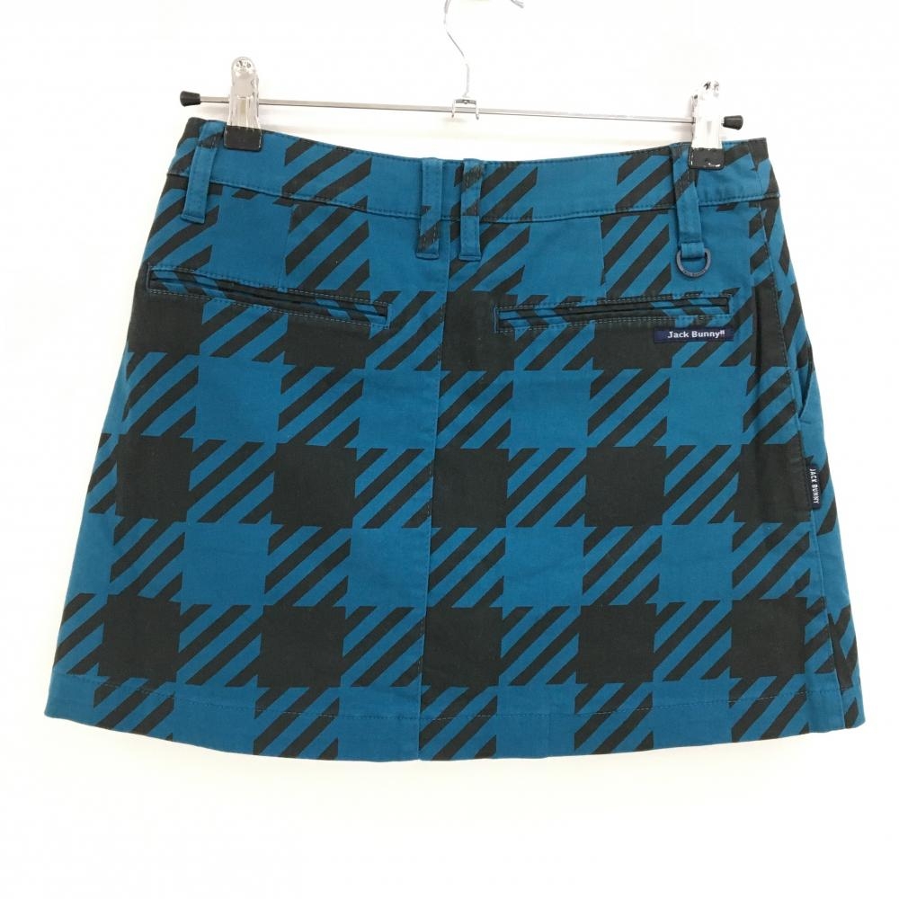 ジャックバニー スカート グリーンブルー×黒 チェック柄 バックロゴ 内側インナーパンツ レディース 1 ゴルフウェア Jack Bunny