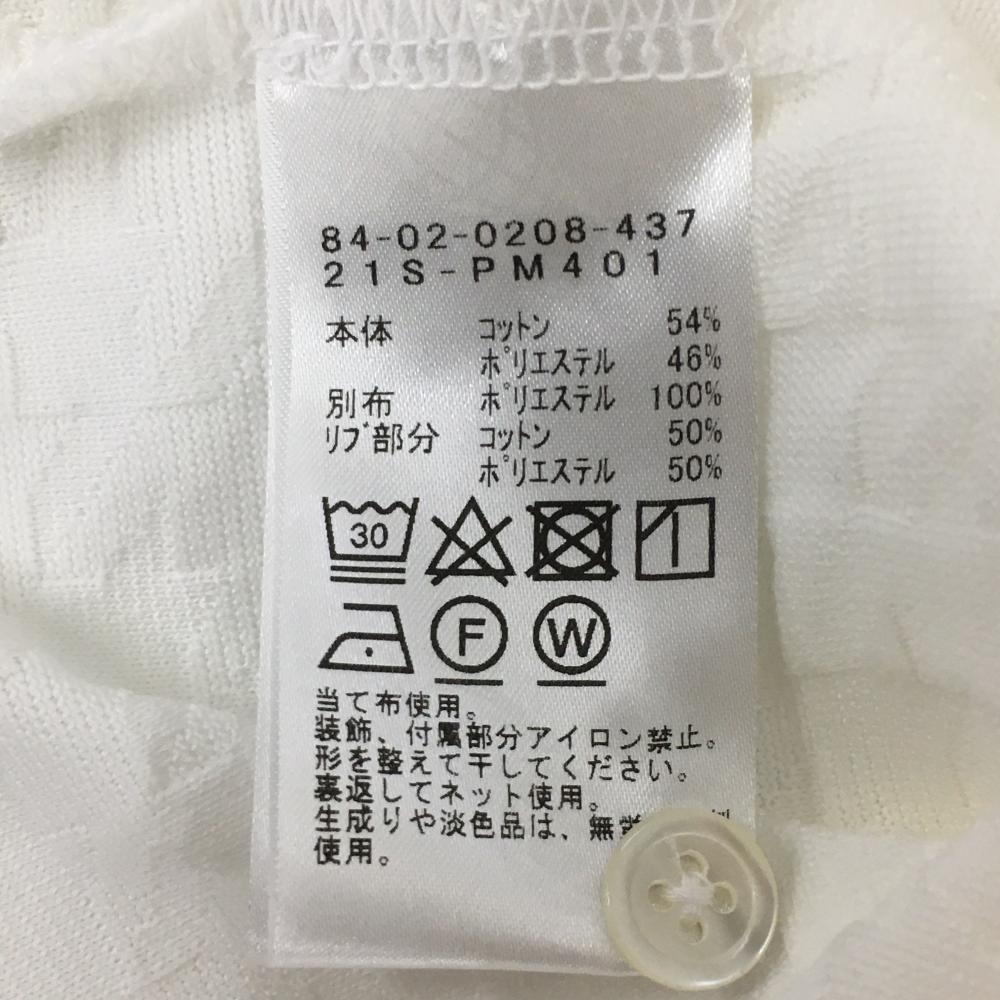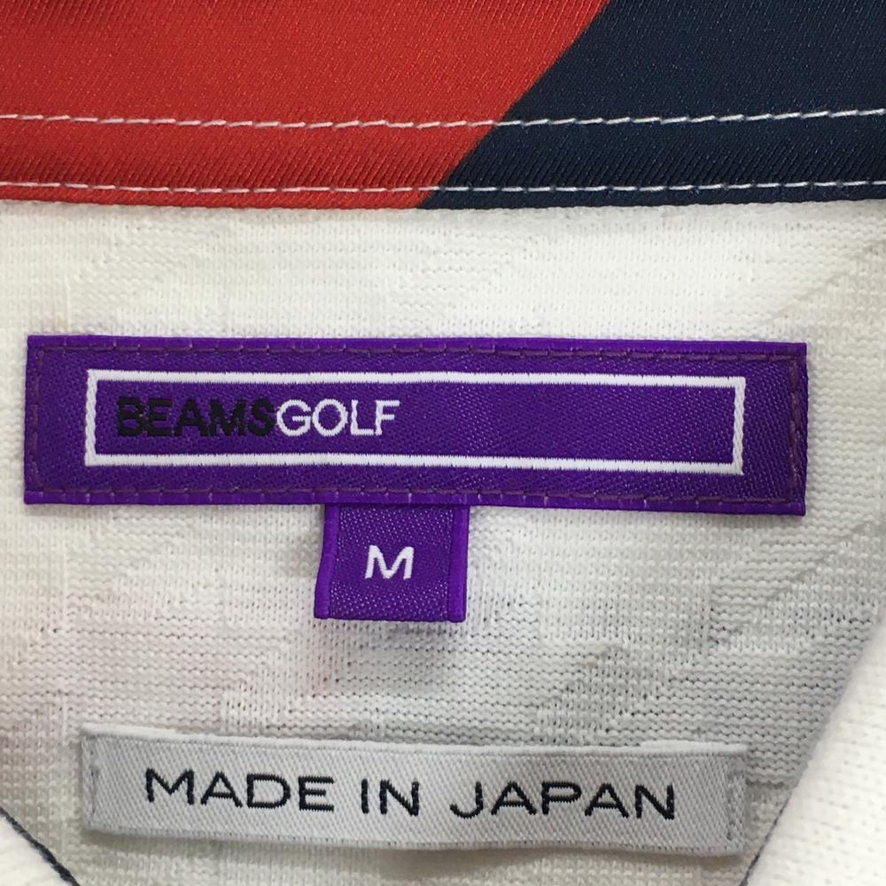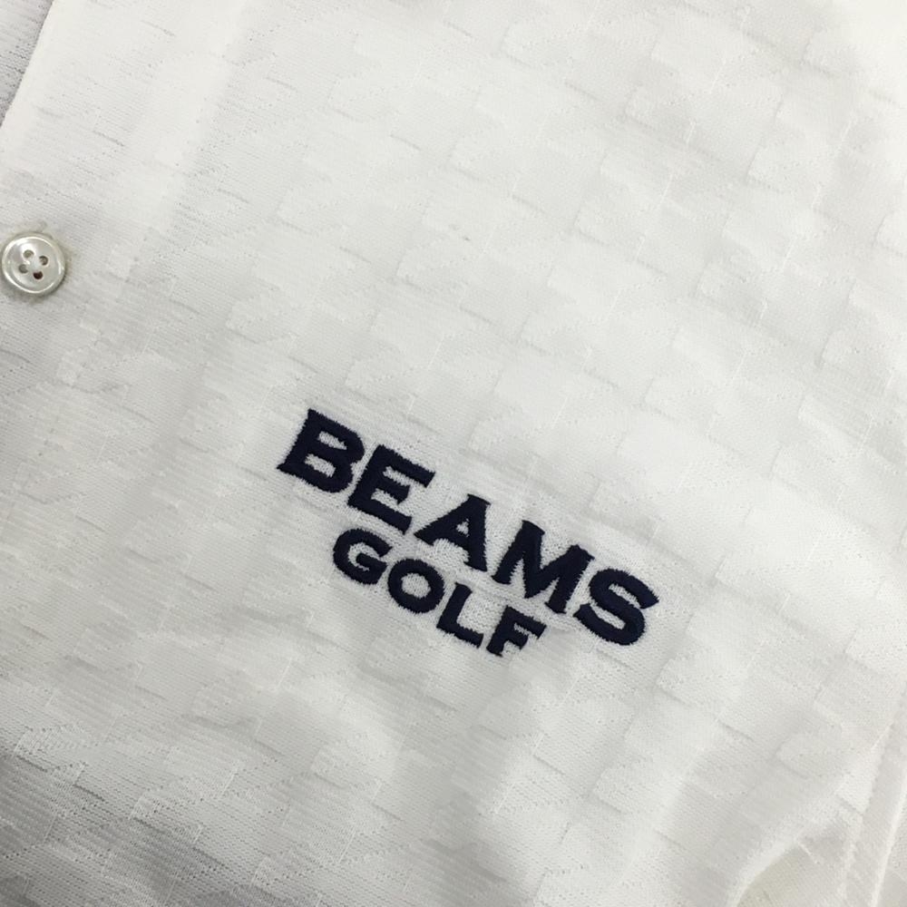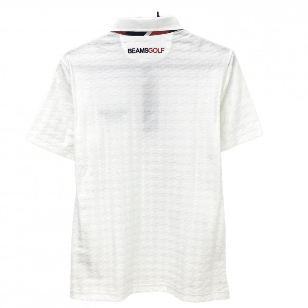 【超美品】ビームスゴルフ 半袖ポロシャツ 白 千鳥格子織生地 襟裏斜めボーダー メンズ M ゴルフウェア BEAMS GOLF