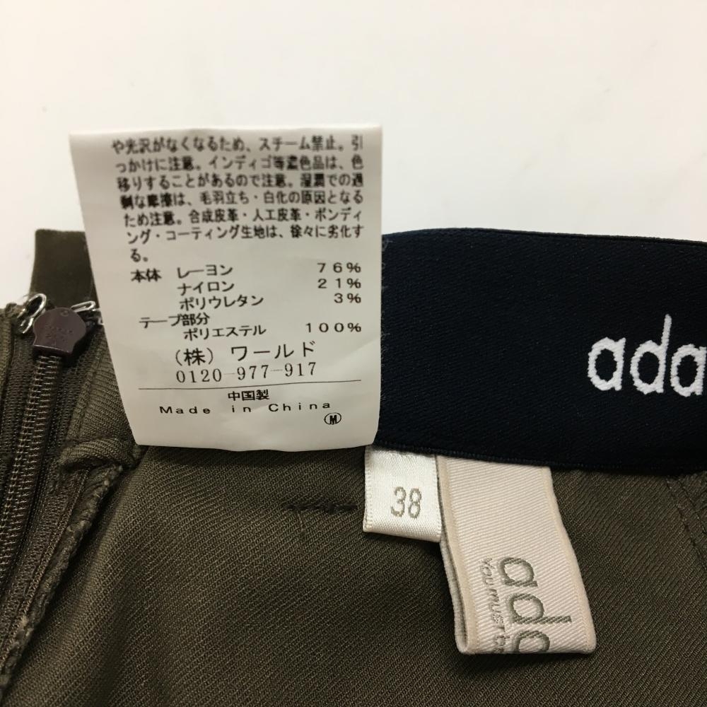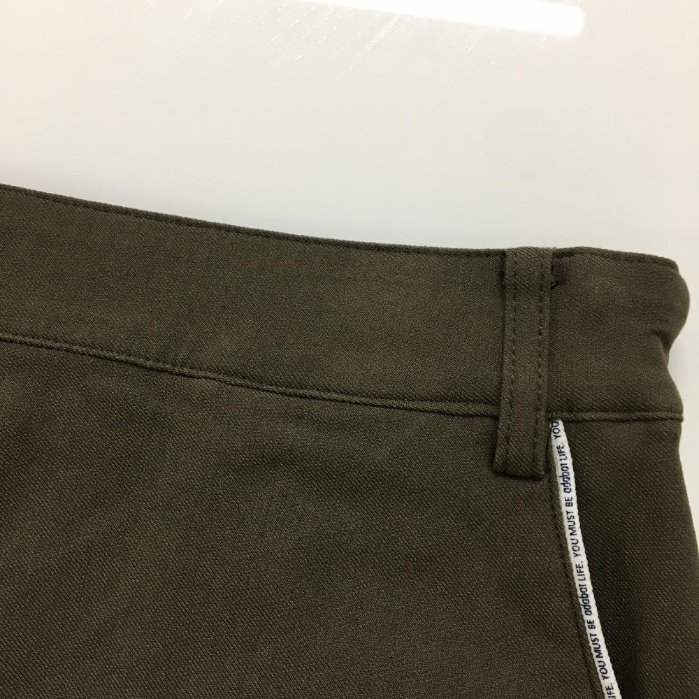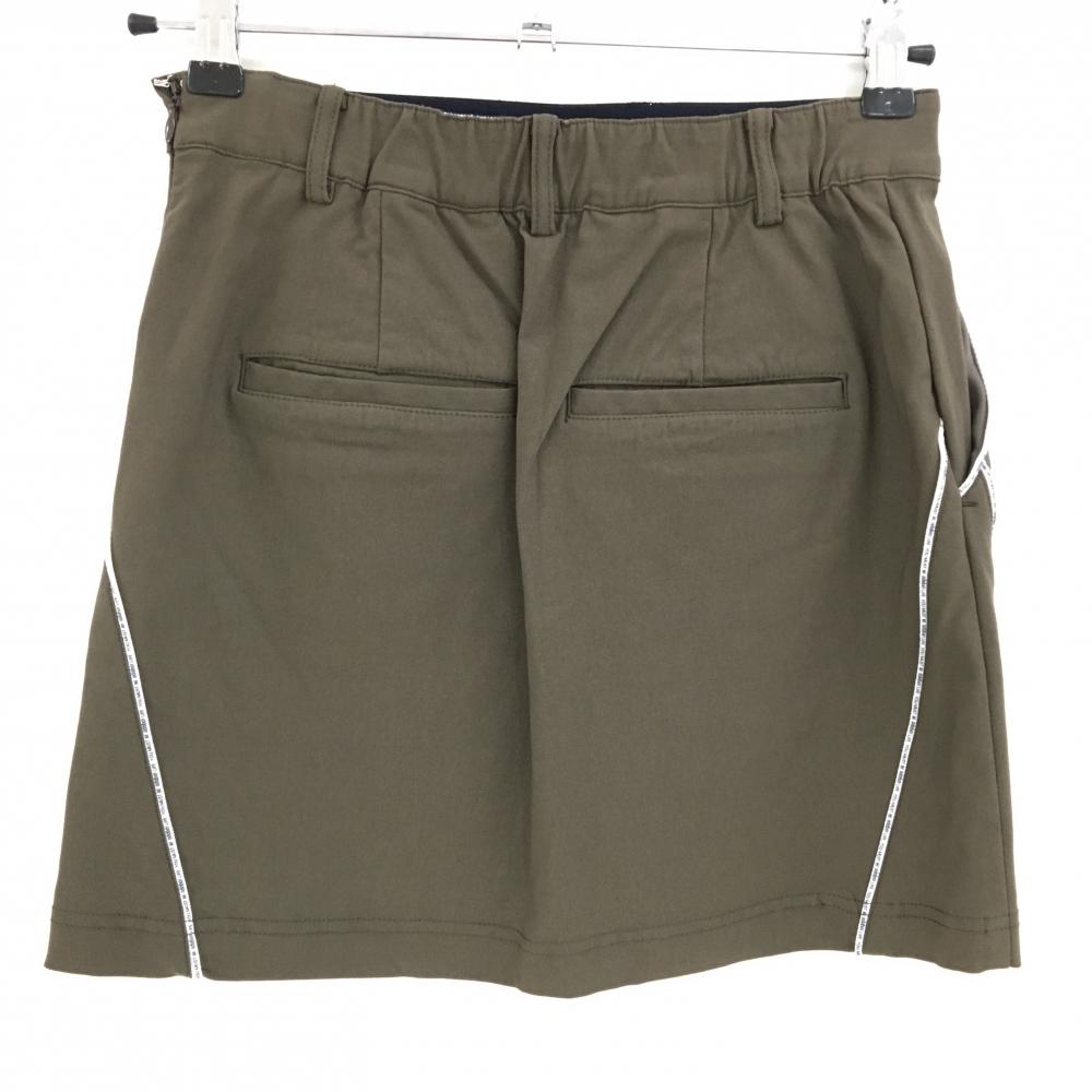 【美品】アダバット ストレッチスカート カーキブラウン×白 パイピング英字 ウエストゴム レディース 38(M) ゴルフウェア adabat