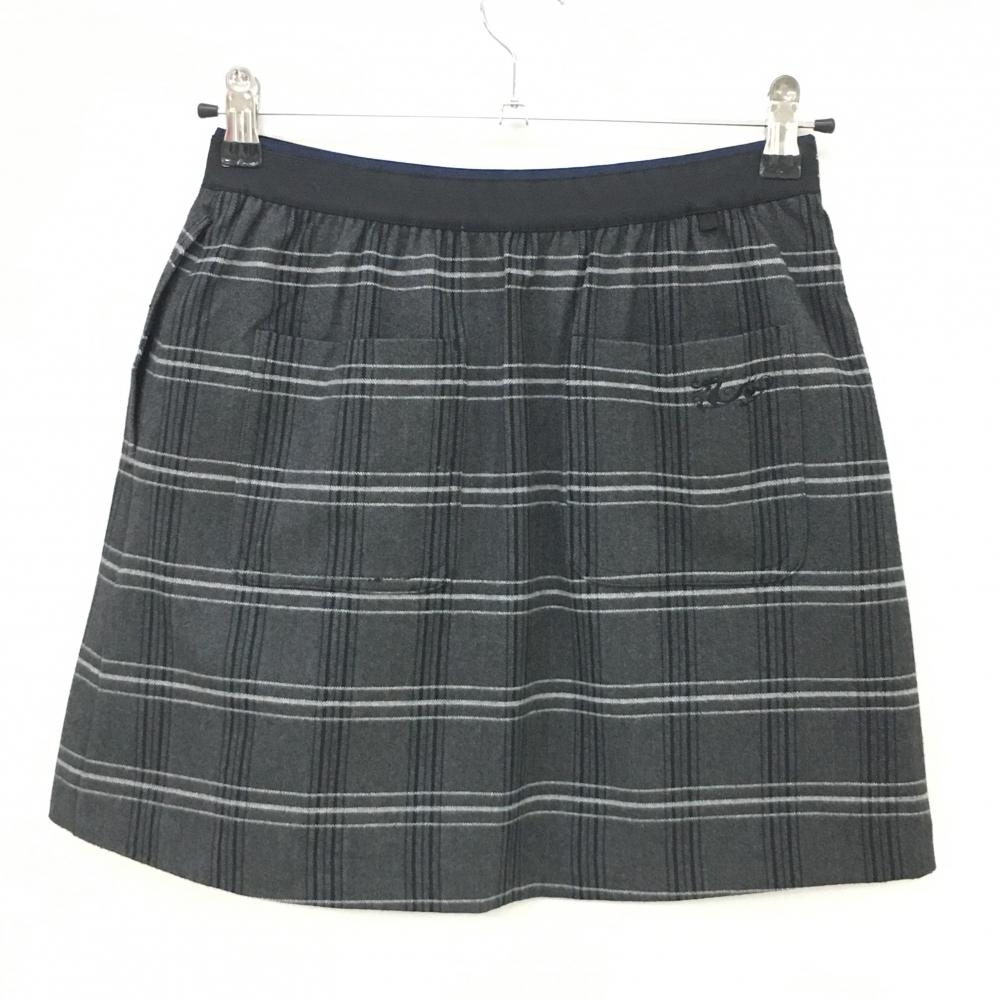 【美品】ダンスウィズドラゴン スカート グレー×白 チェック ウエスト一部ゴム レディース 2(M) ゴルフウェア Dance With Dragon