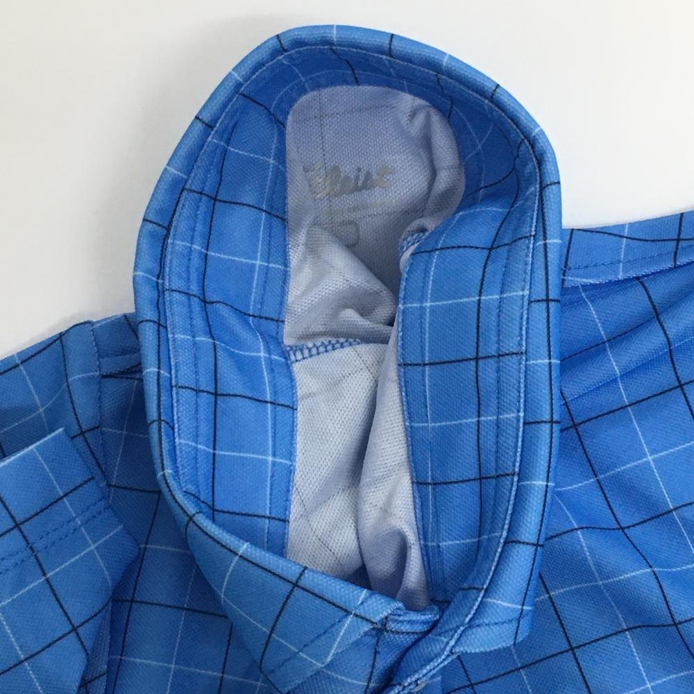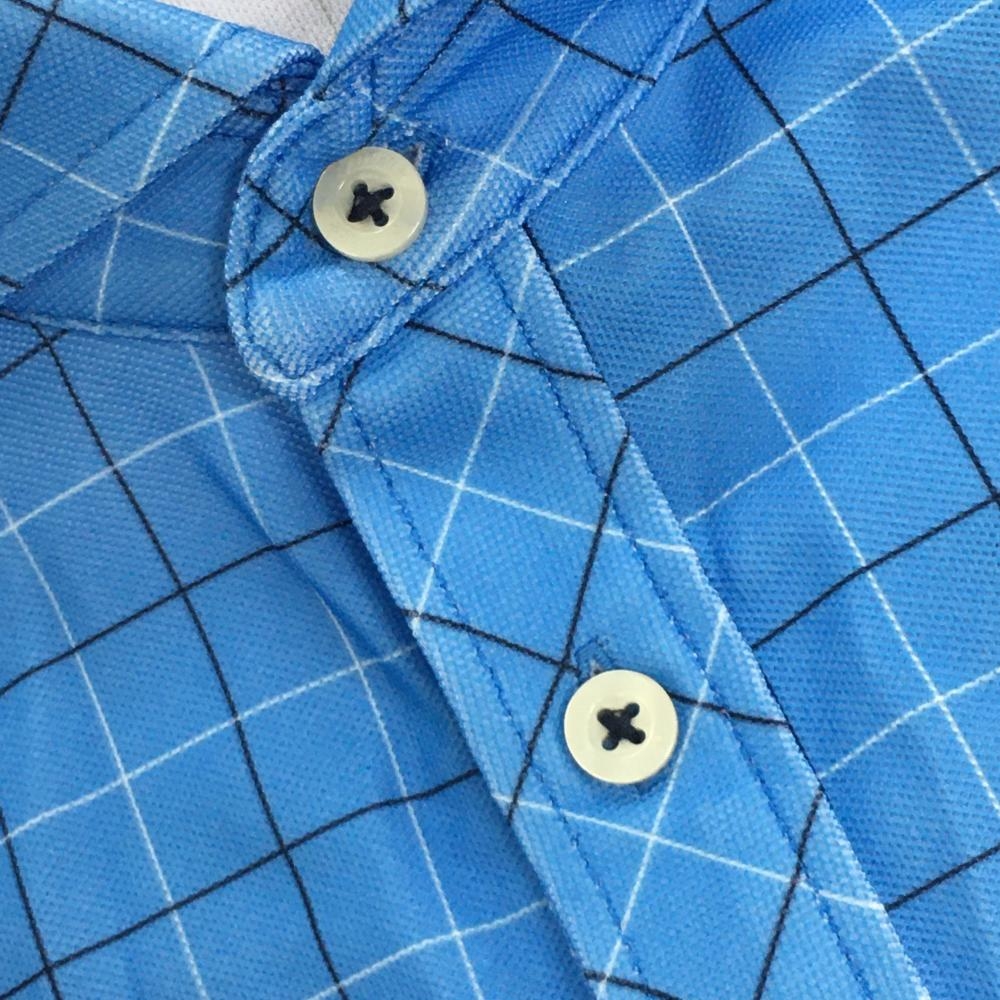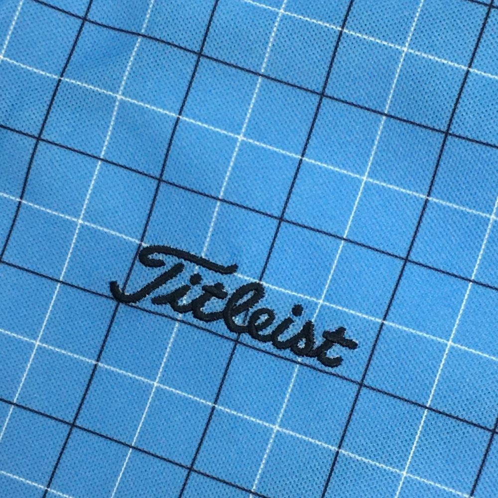 タイトリスト 半袖ポロシャツ ライトブルー 格子柄 ロゴ メンズ M ゴルフウェア TITLEIST
