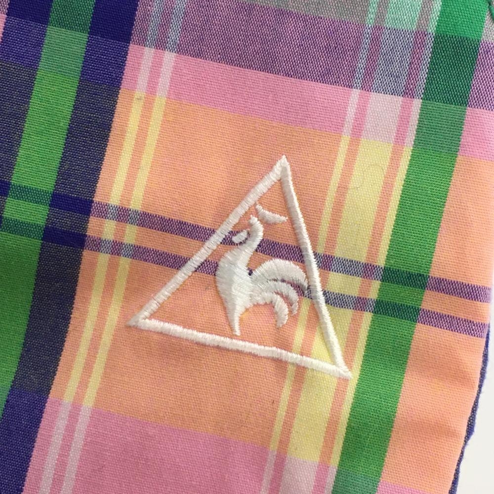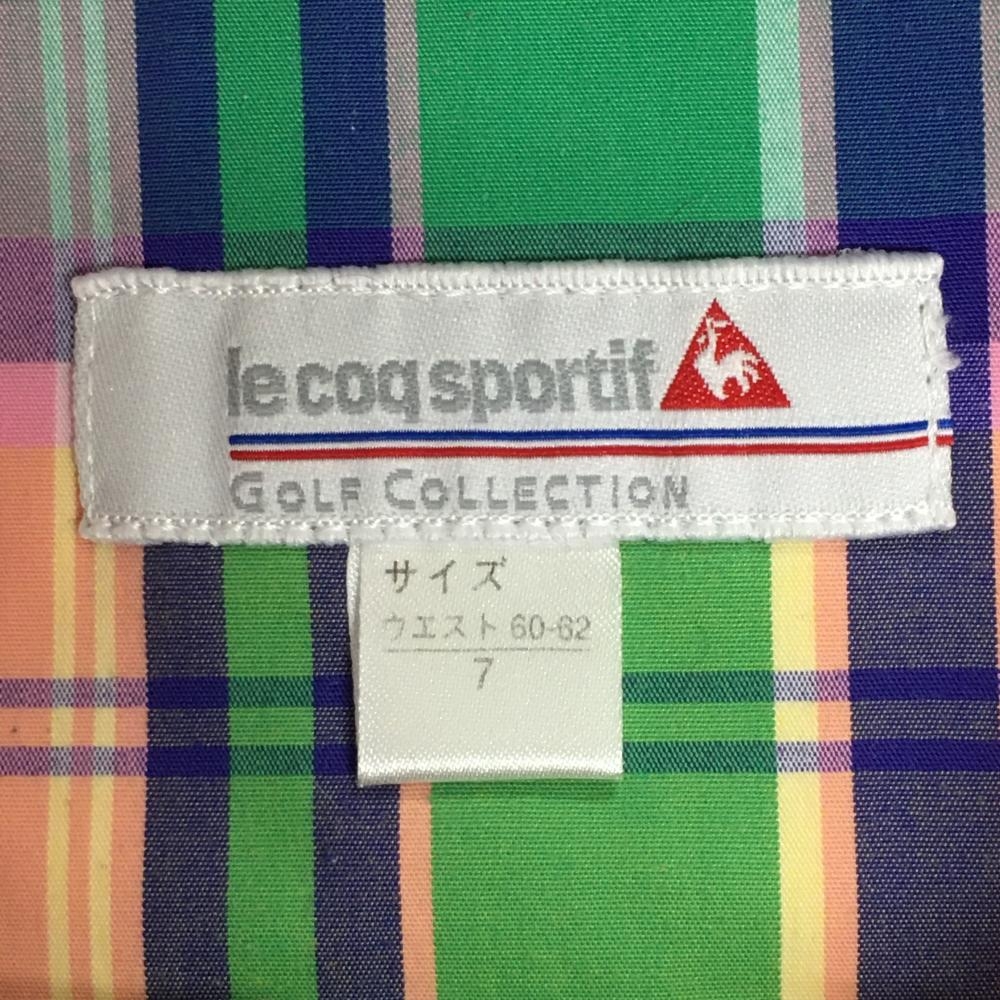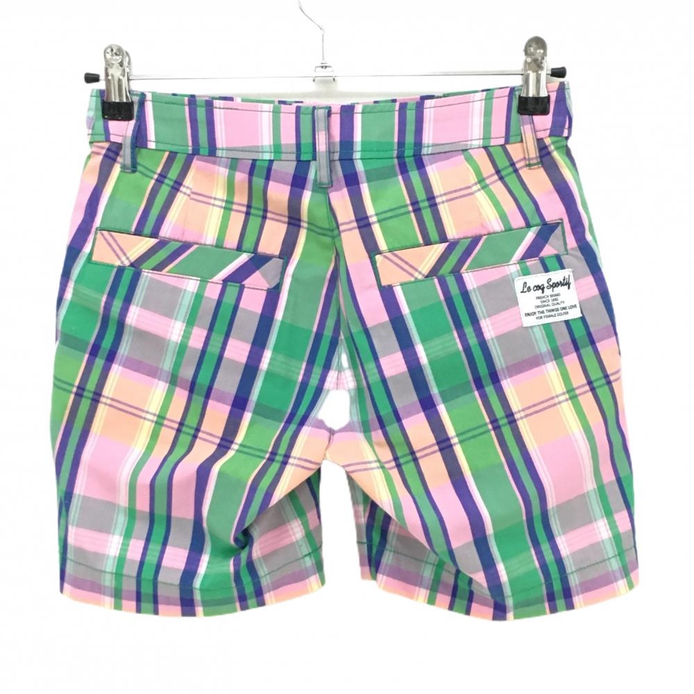 【美品】ルコックゴルフ ショートパンツ ピンク×グリーン×ブルー チェック レディース 7 ゴルフウェア le coq sportif