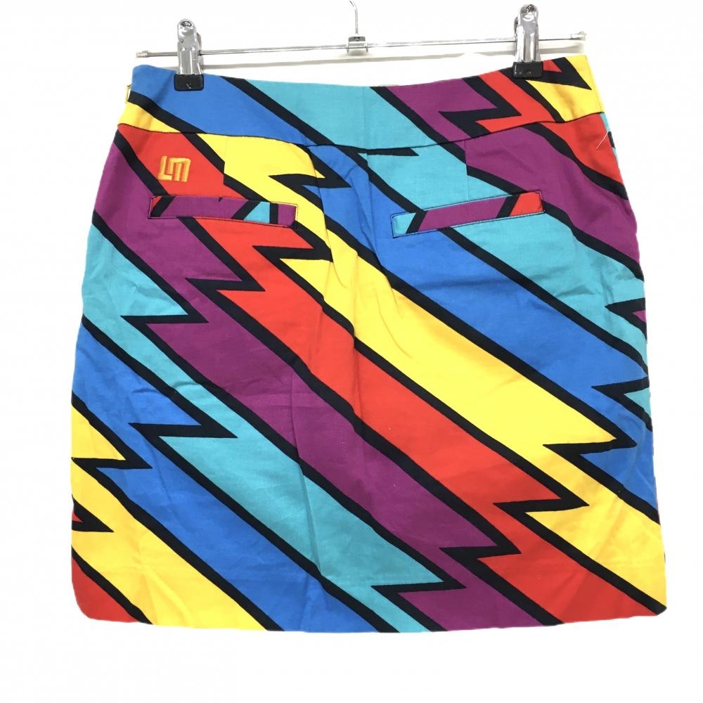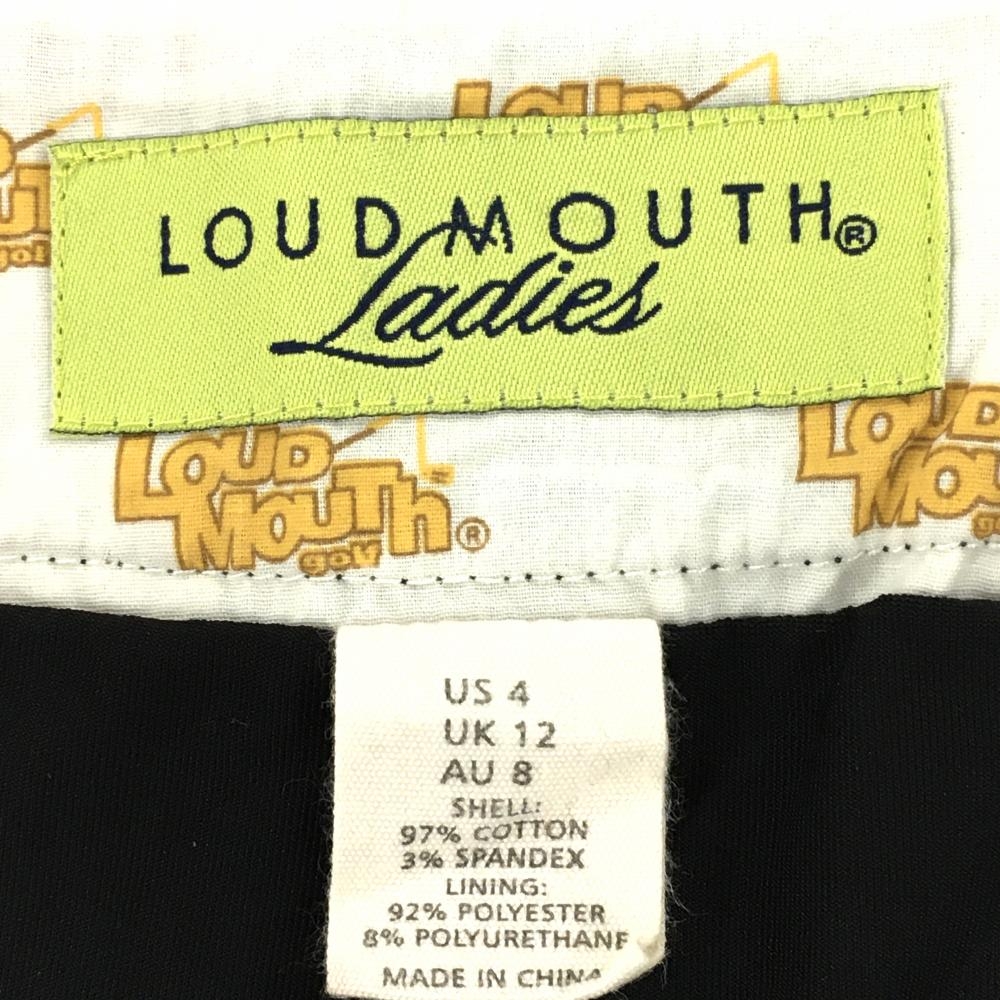 【美品】ラウドマウス スカート 黒×マルチカラー ャプテンサンダーボルト 総柄 レディース US-4(XL) ゴルフウェア LOUDMOUTH