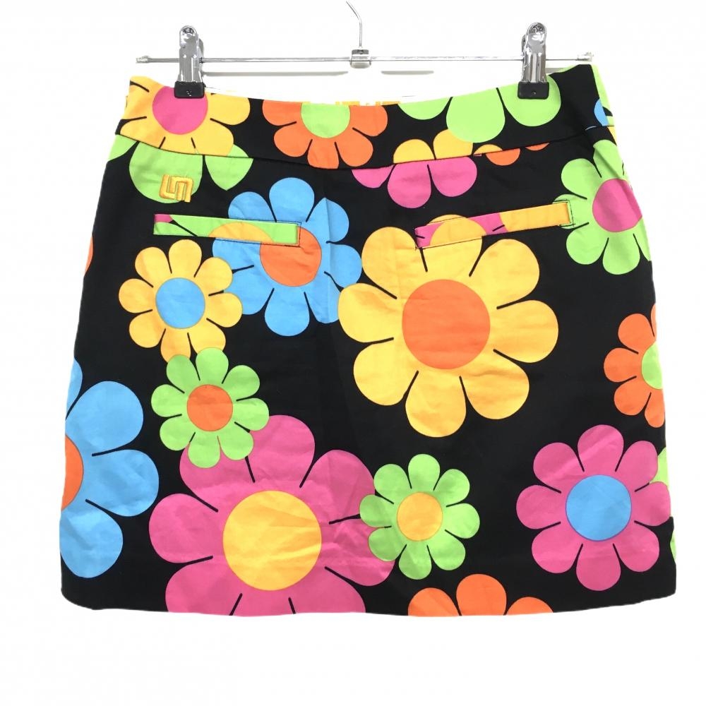 【美品】ラウドマウス スカート 黒×マルチカラー 花柄 フラワー バックロゴ レディース US-4(XL) ゴルフウェア LOUDMOUTH