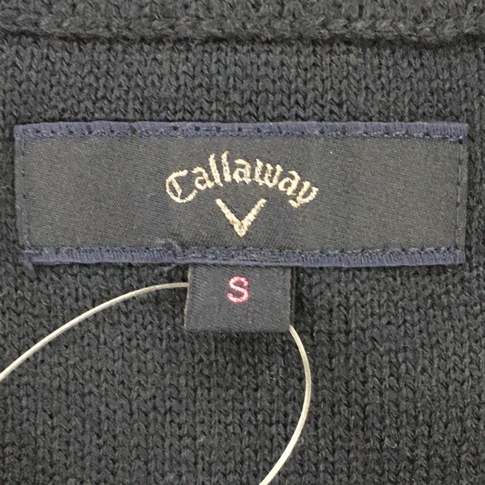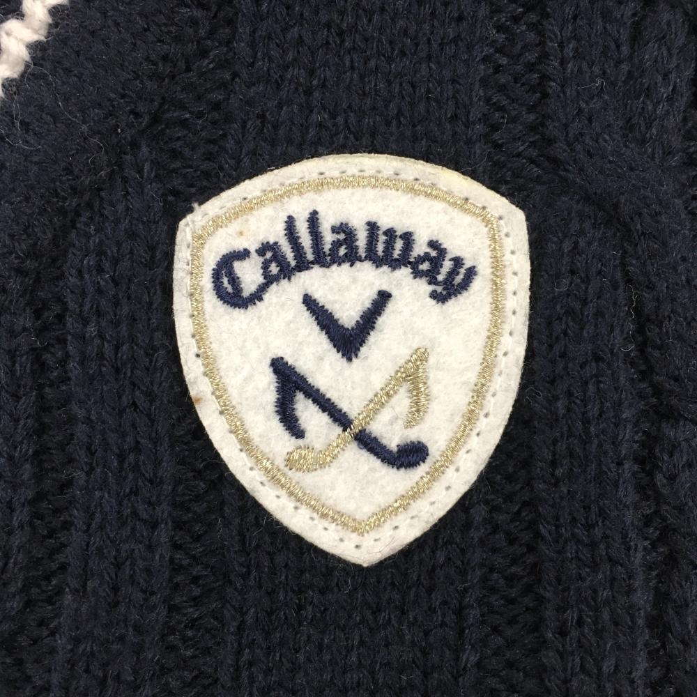 【超美品】キャロウェイ ニットベスト ネイビー×白 Vネック ワッペン レディース S ゴルフウェア Callaway