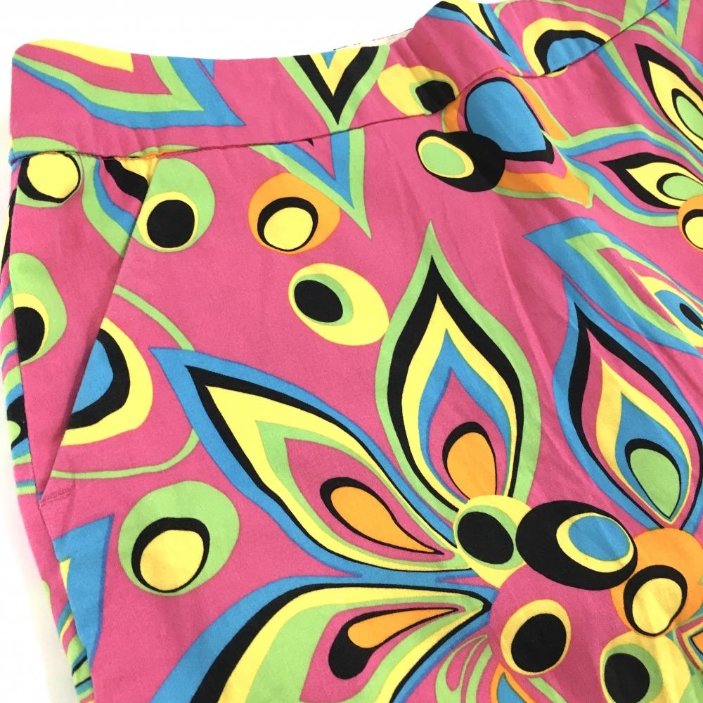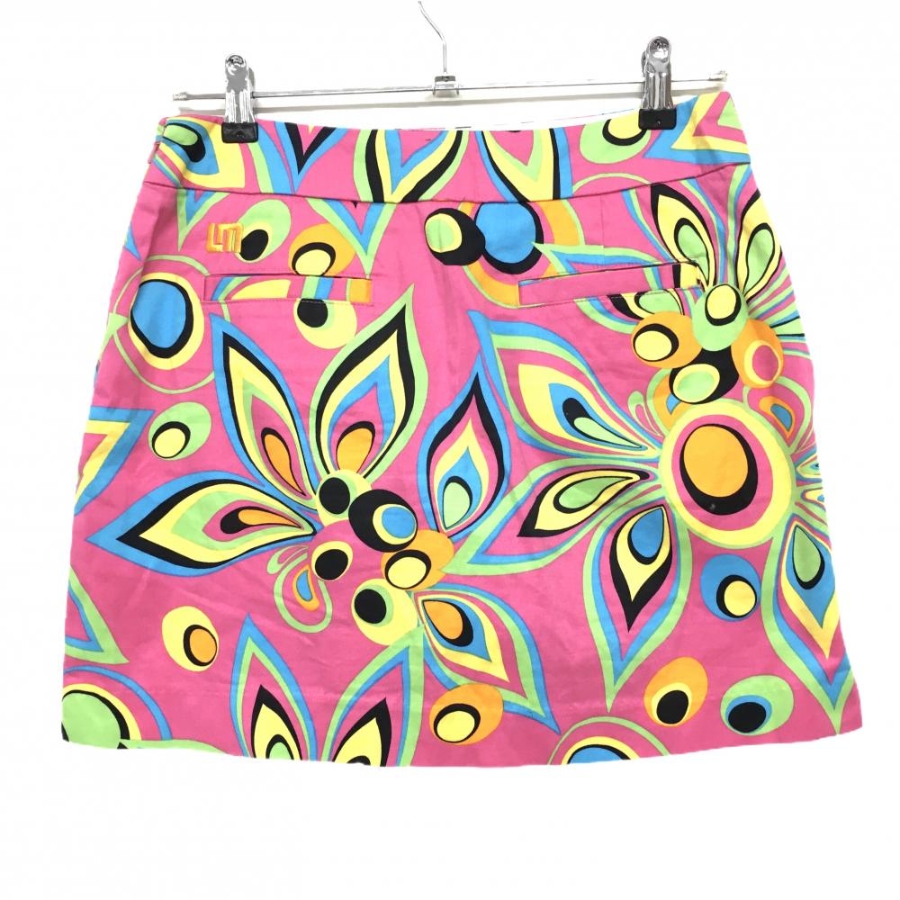【美品】ラウドマウス スカート ピンク×マルチカラー シャガデリック バックロゴ レディース US-4(XL) ゴルフウェア LOUDMOUTH